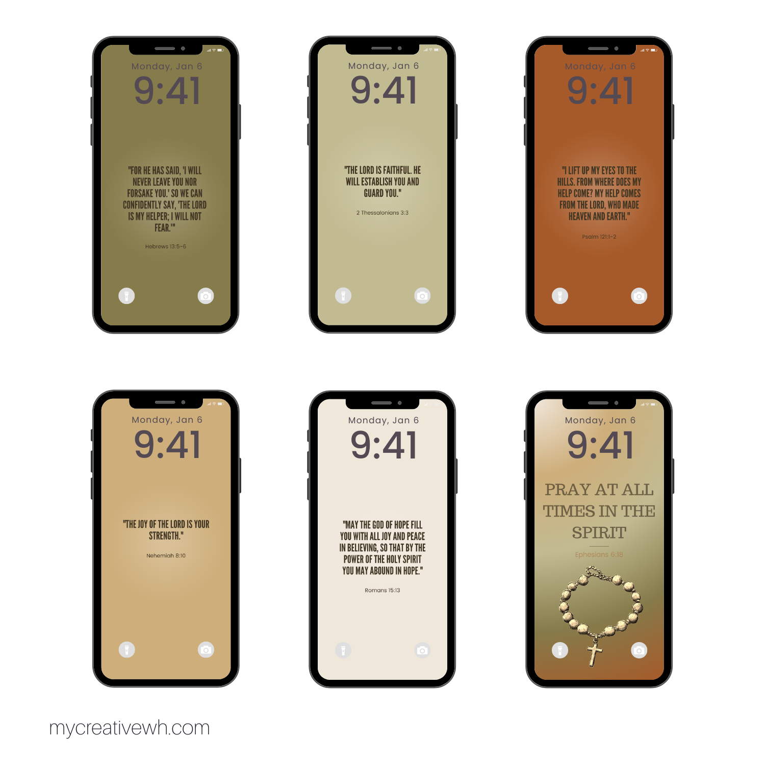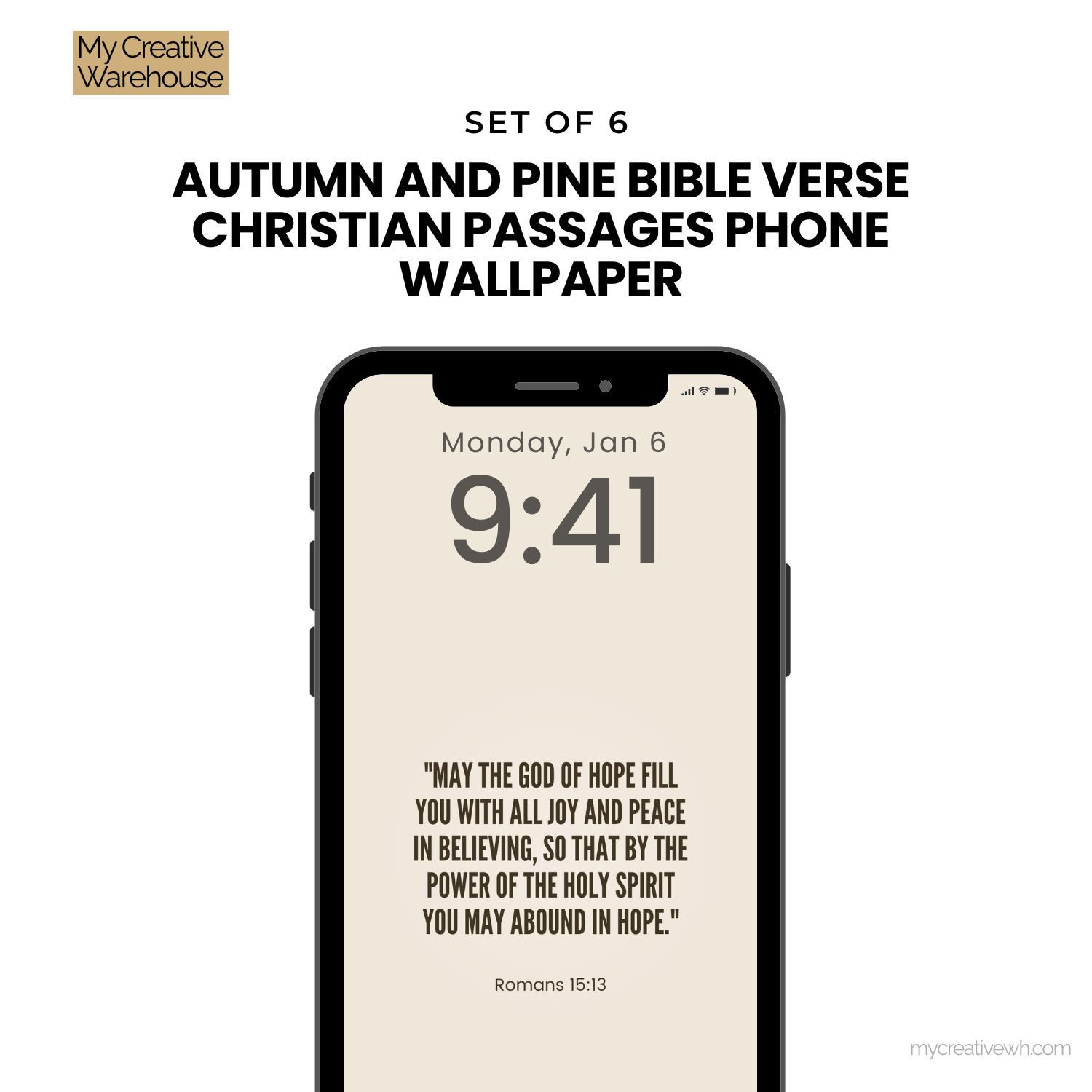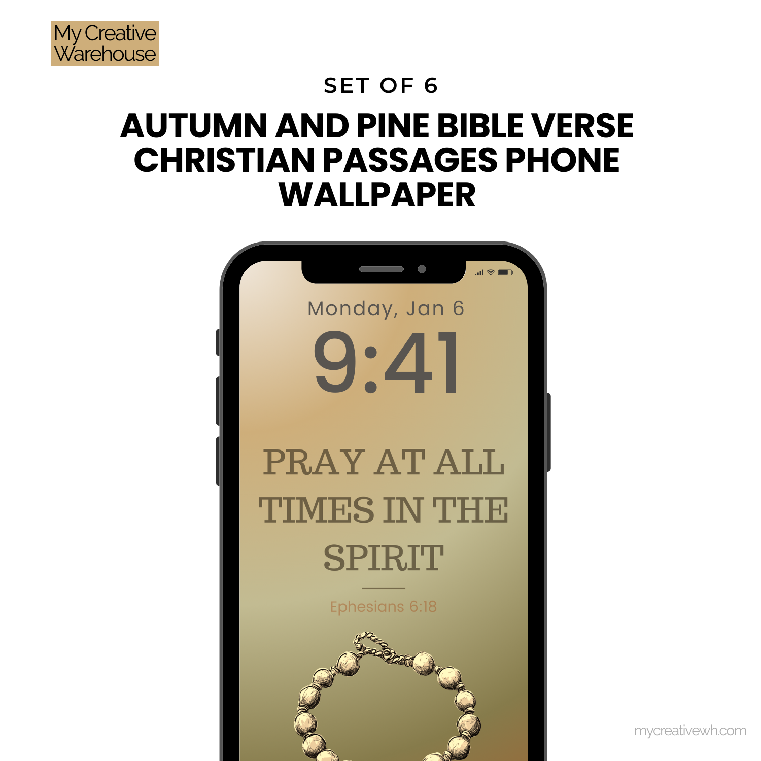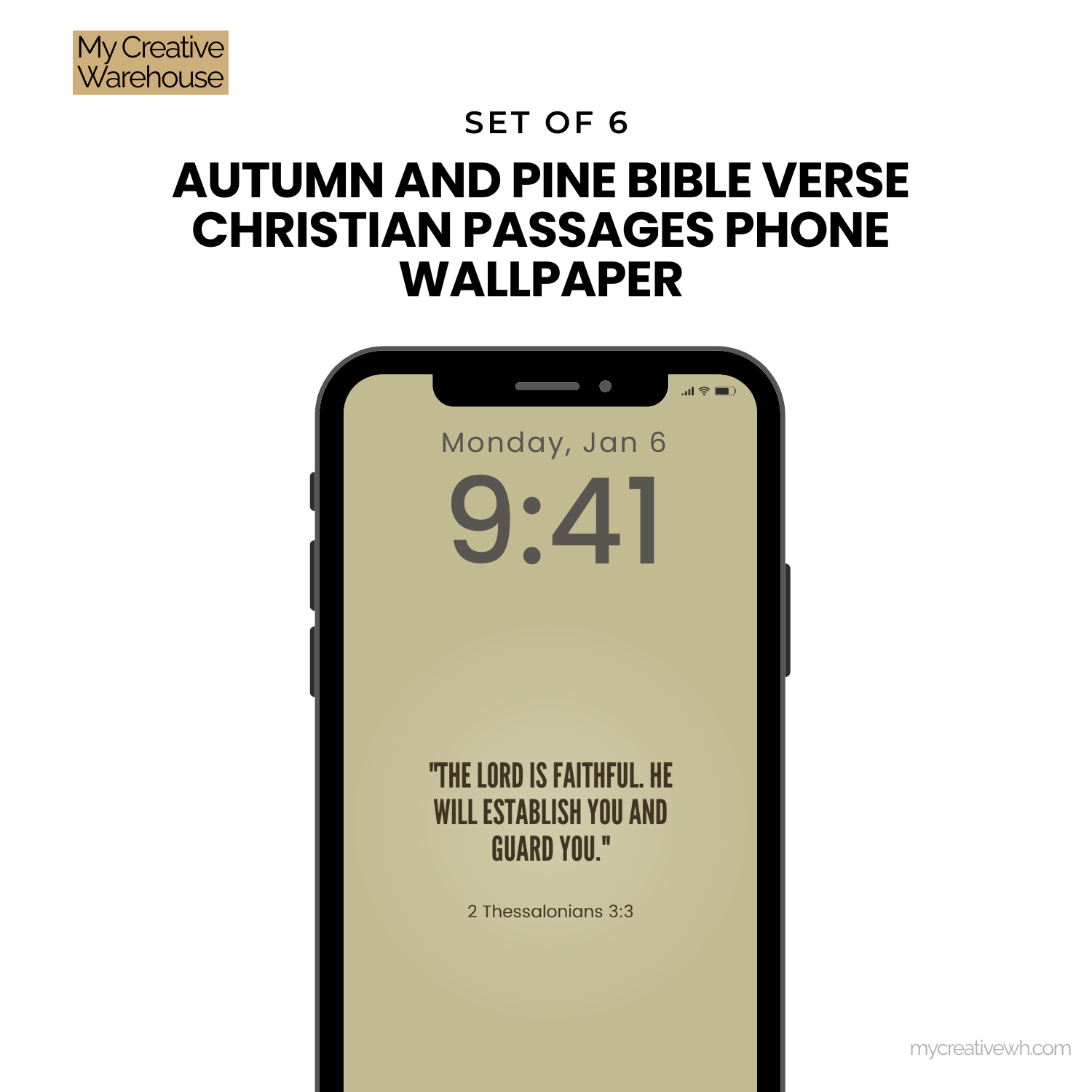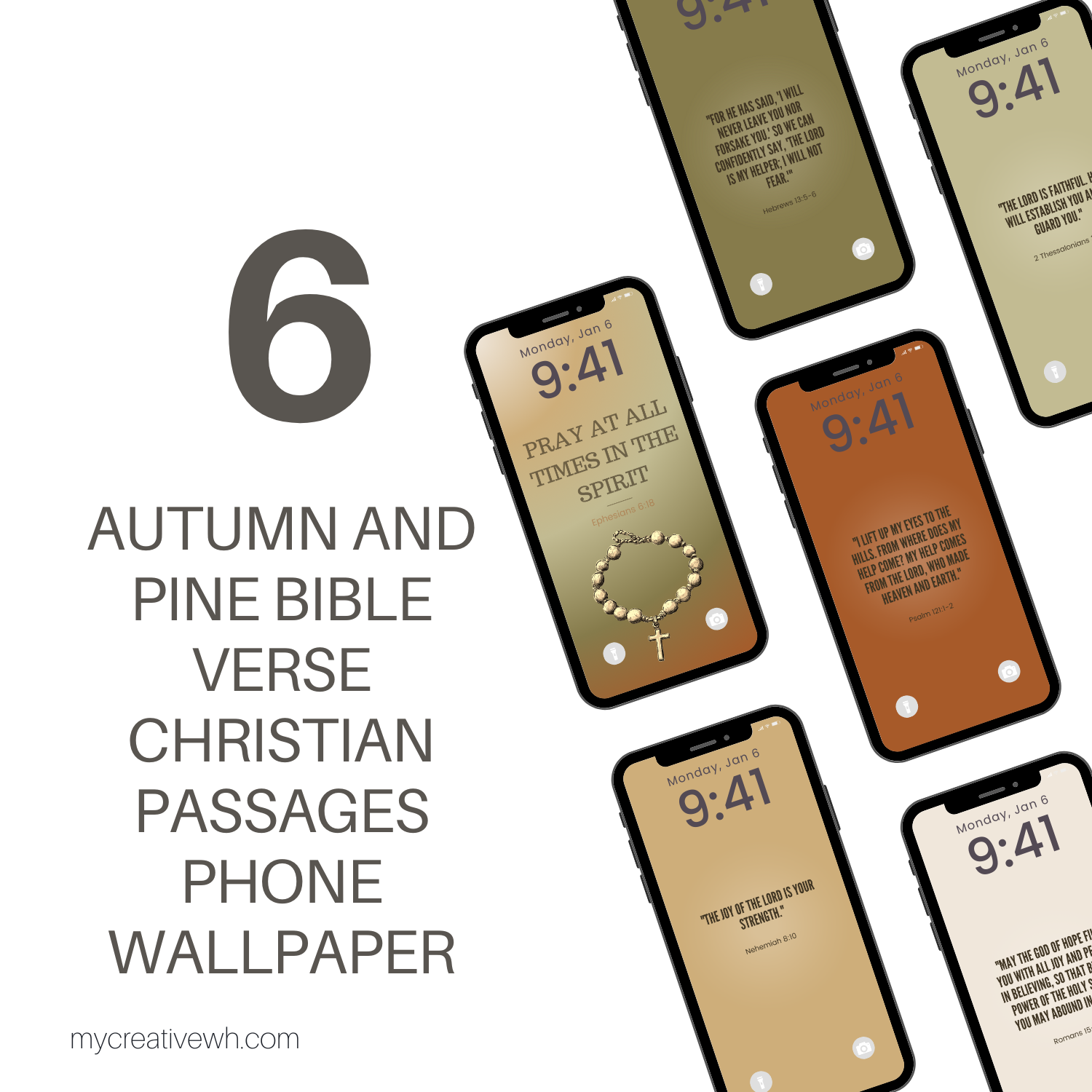 Ground your faith in earthy warmth with our Autumn and Pine Bible Verse Christian Passages Phone Wallpaper Set. This 6-design collection (plus a rosary bonus) blends olive green, burnt sienna, ivory, and deep forest tones for a cozy, nature-inspired spiritual retreat.