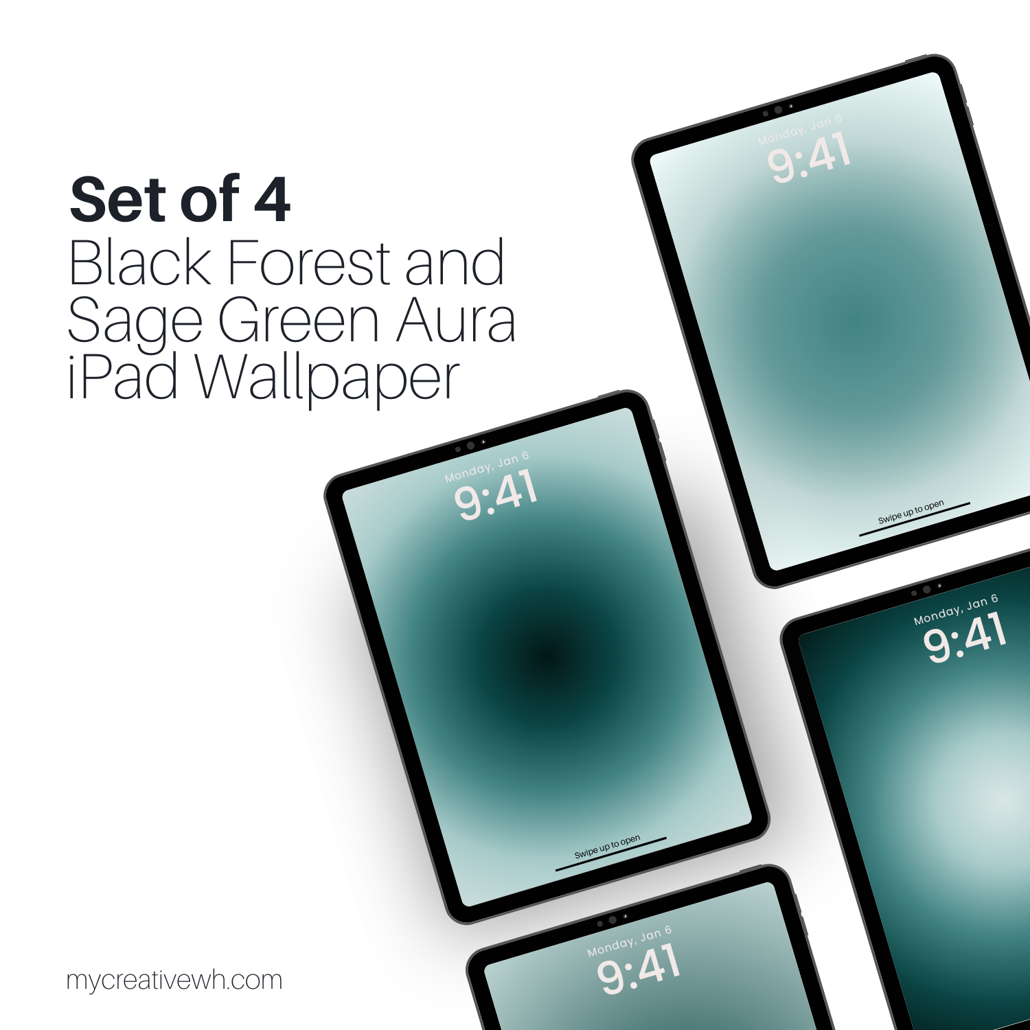 Elevate your tablet’s canvas with the Black Forest and Sage Green Aura iPad Wallpaper, a set of 4 high-resolution designs crafted for medium-sized screens. The circular radial gradient ombre merges forest green, mint, pristine white, and soft sage into a sweeping minimalist panorama, evoking the feeling of a moody forest.