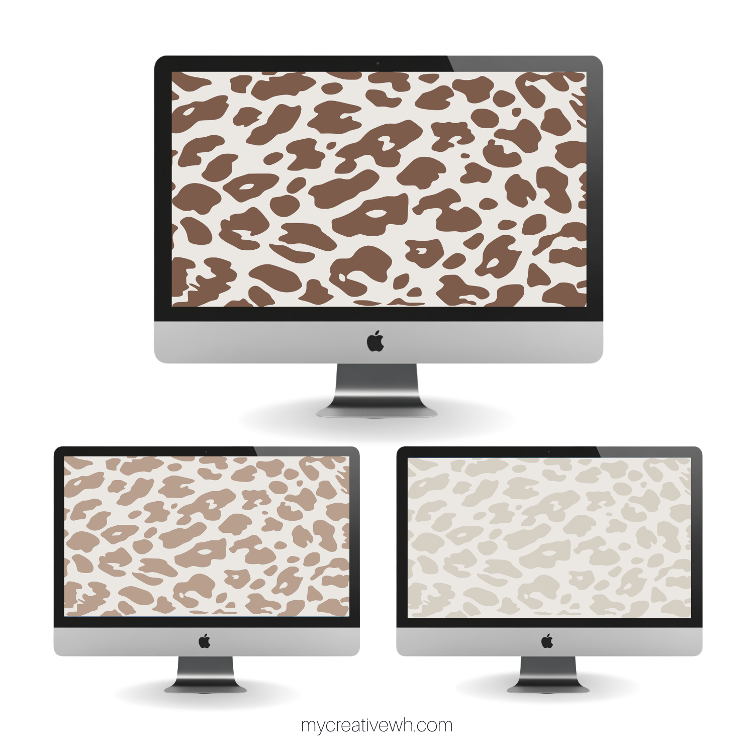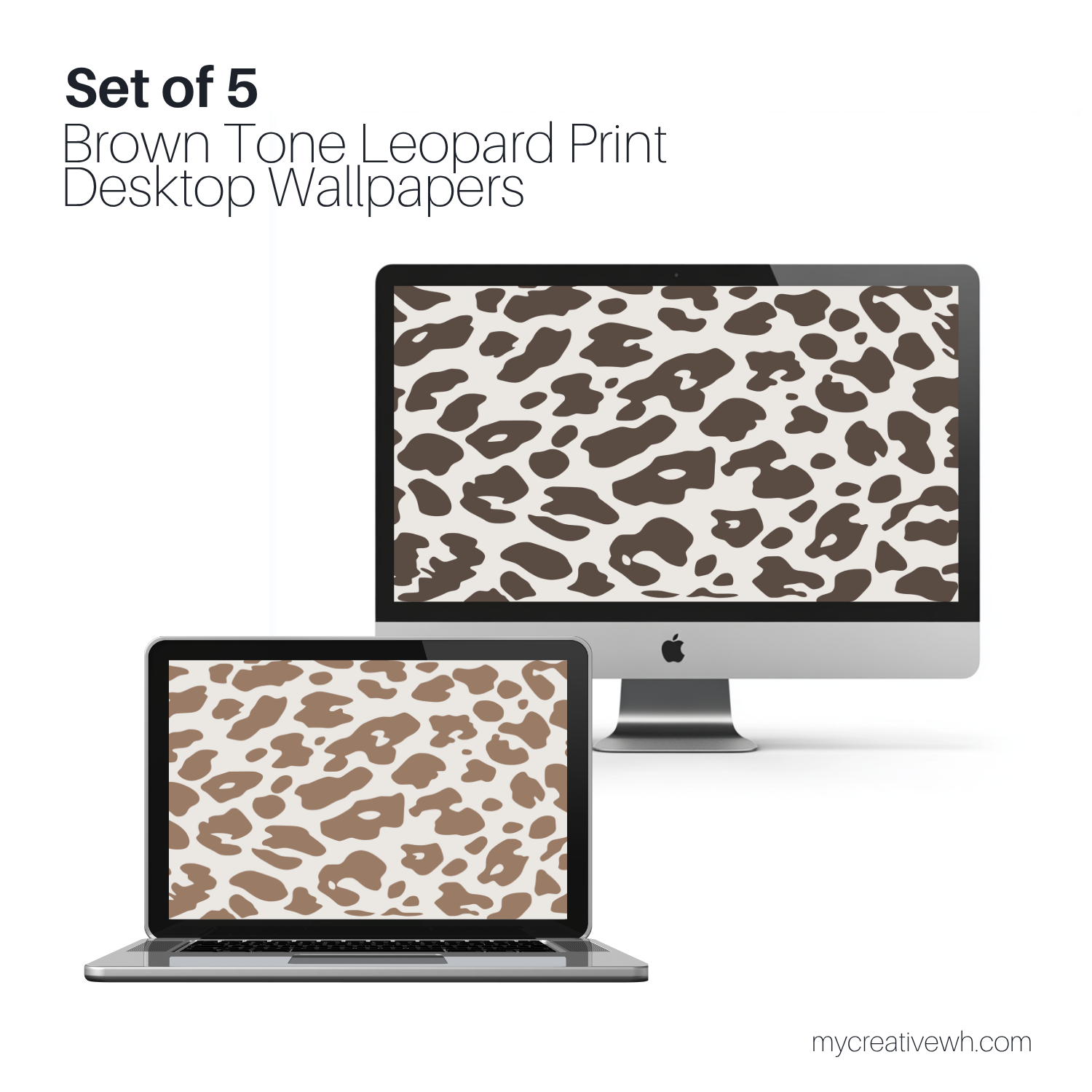 Elevate your workspace with the Brown Tone Leopard Print Desktop Wallpaper, a collection of 5 high-resolution untamed leopard print designs with minimalist flair. Each wallpaper stretches the iconic leopard pattern across your screen in rich brown hues—caramel, chestnut, espresso, and taupe—set against a creamy off-white backdrop for a sleek, professional edge.