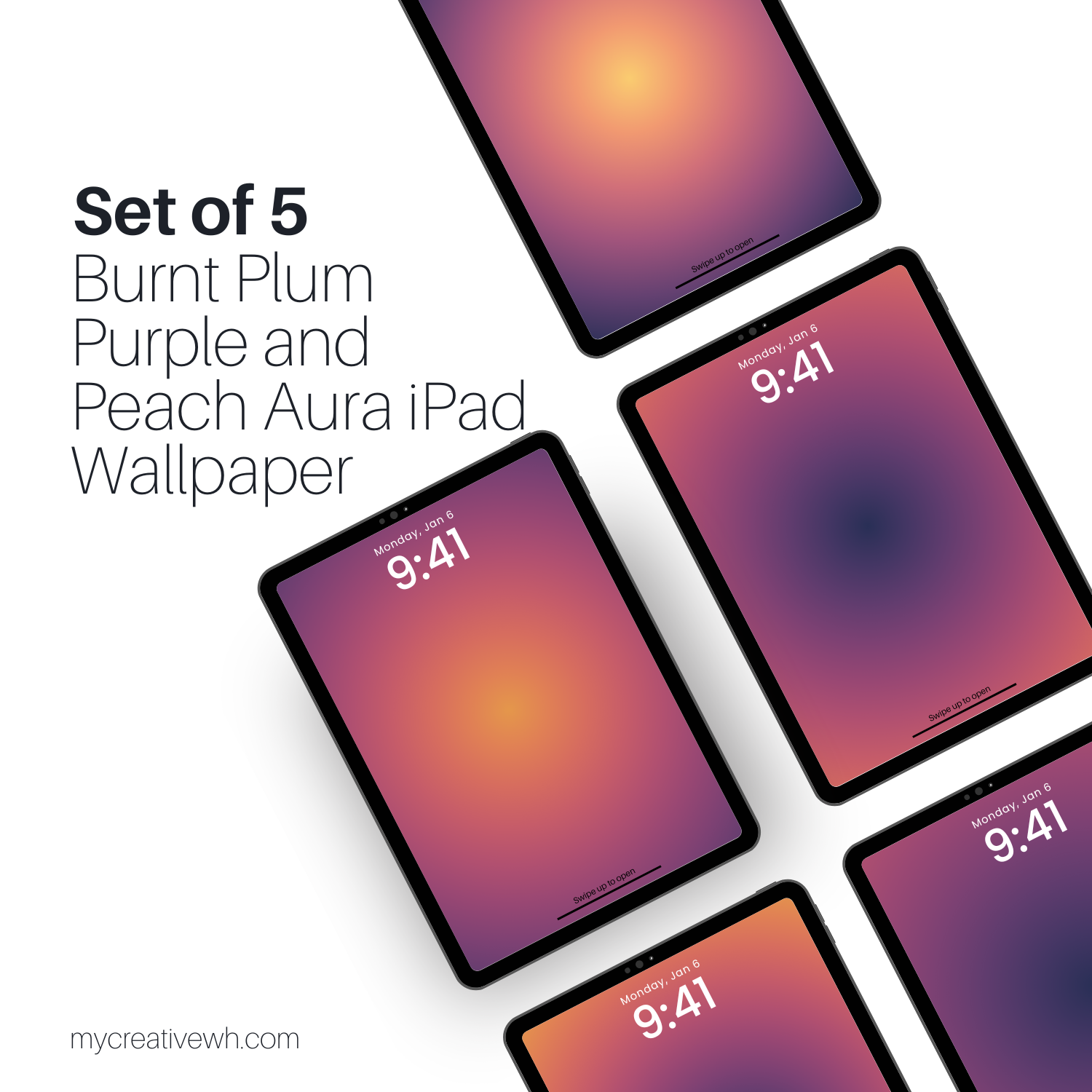 Elevate your iPad’s display with our Burnt Plum Purple and Peach Aura iPad Wallpaper. This set of 5 high-resolution wallpapers, are designed to showcase the fiery elegance of a sunset. The circular gradient ombre blends royal purple, yellow orange, and orange coral into a minimalist masterpiece that spans your tablet’s expansive screen. With rich depth and seamless transitions, these wallpapers turn your device into a vibrant yet calming visual retreat, perfect for enhancing productivity, creativity, or leisurely browsing.