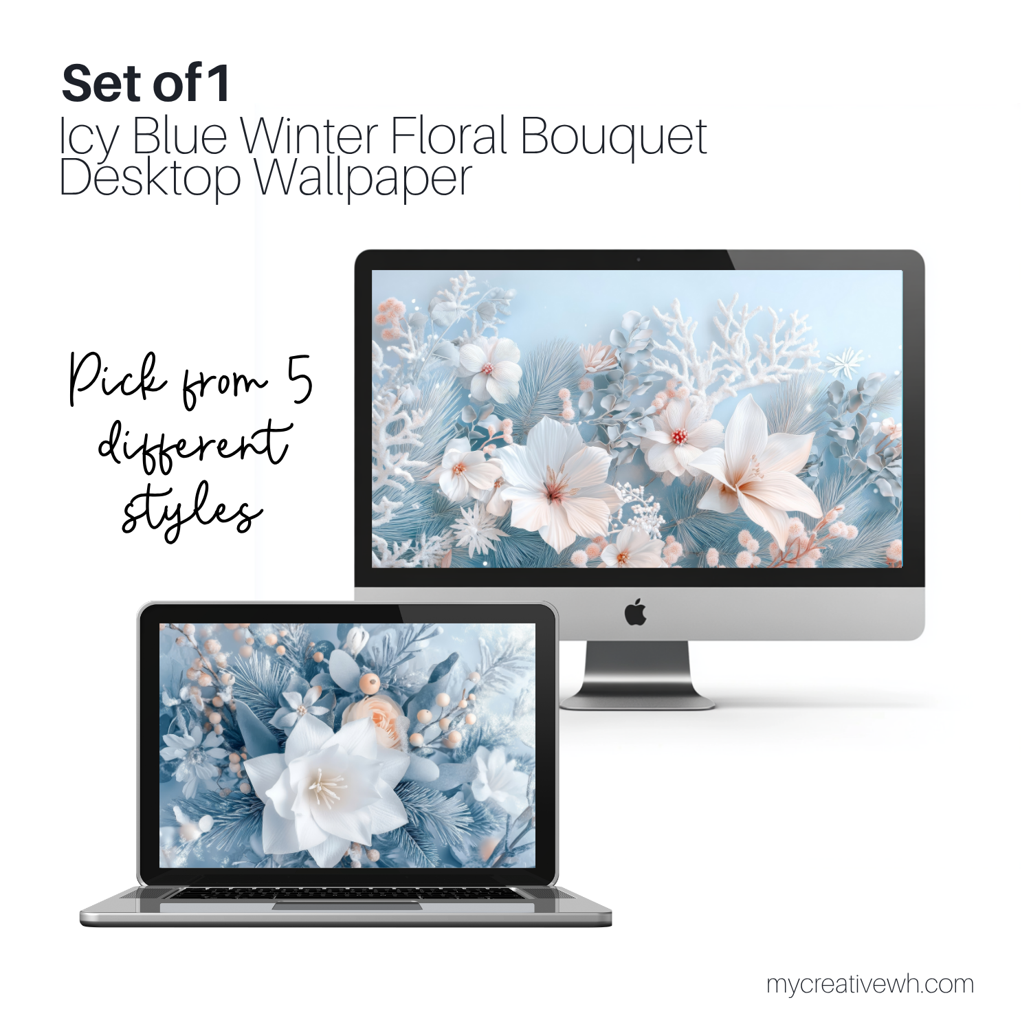 Icy Blue Winter Floral Bouquet Desktop Wallpaper
