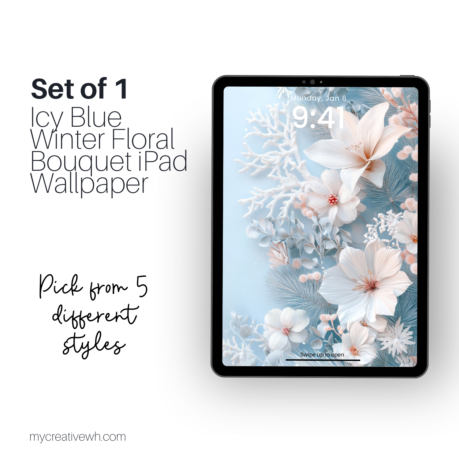 Icy Blue Winter Floral Bouquet iPad Wallpaper