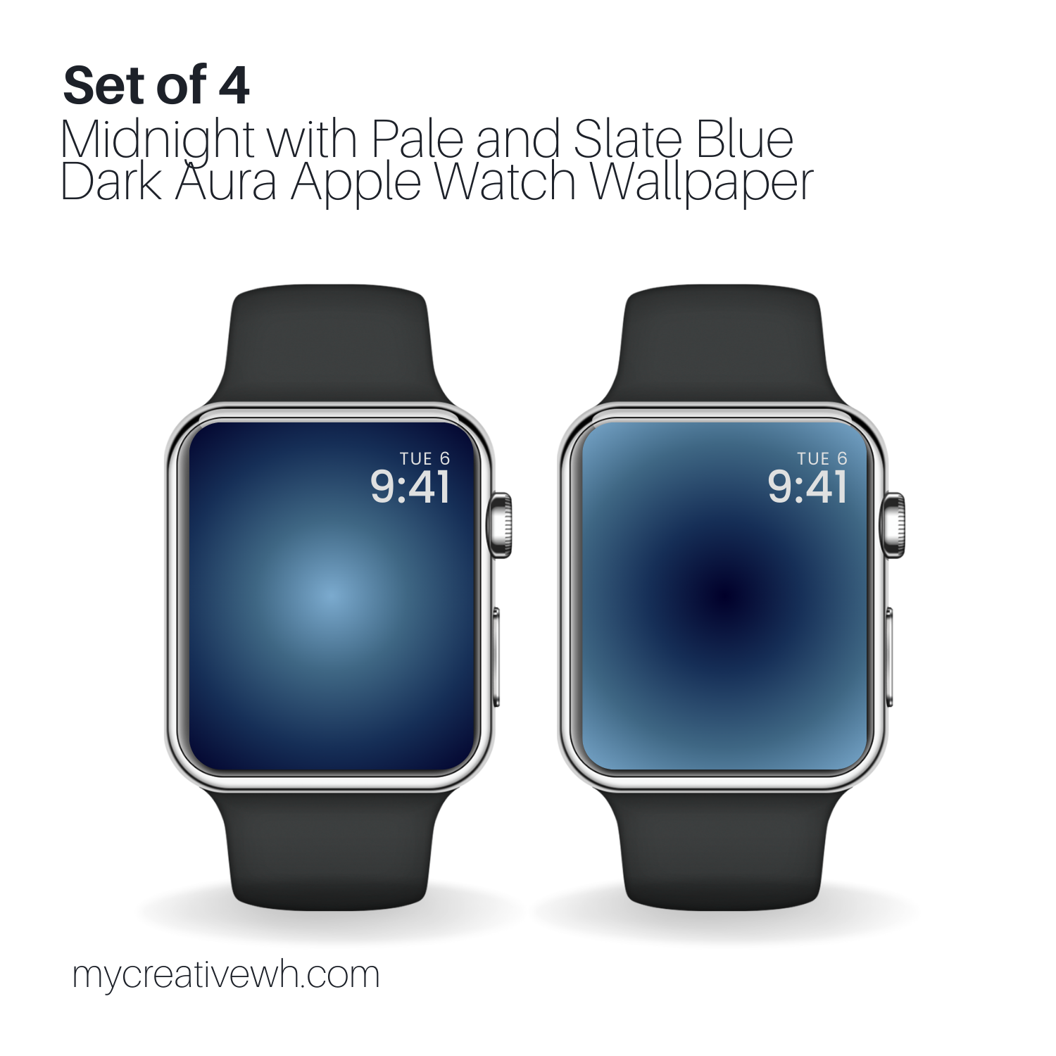 Give your wrist a facelift with the subtle allure of the Midnight with Pale and Slate Blue Dark Aura Apple Watch Wallpaper. This set of 4 sleek, high-resolution designs boasts a circular radial gradient ombre, blending slate blue, midnight navy, and pale blue. The gradient radiates like moonlight on water, adding understated sophistication to workouts, meetings, or everyday glances.