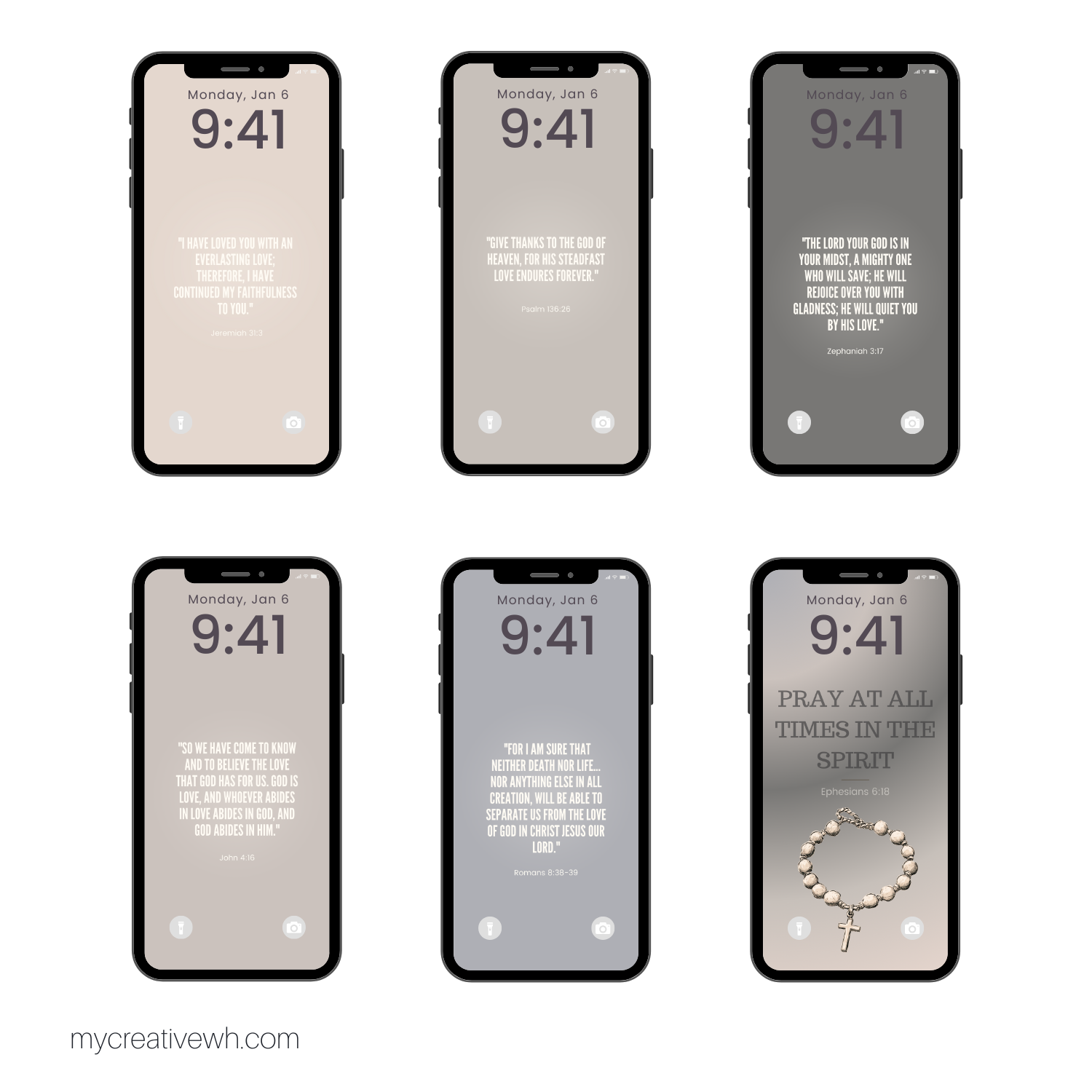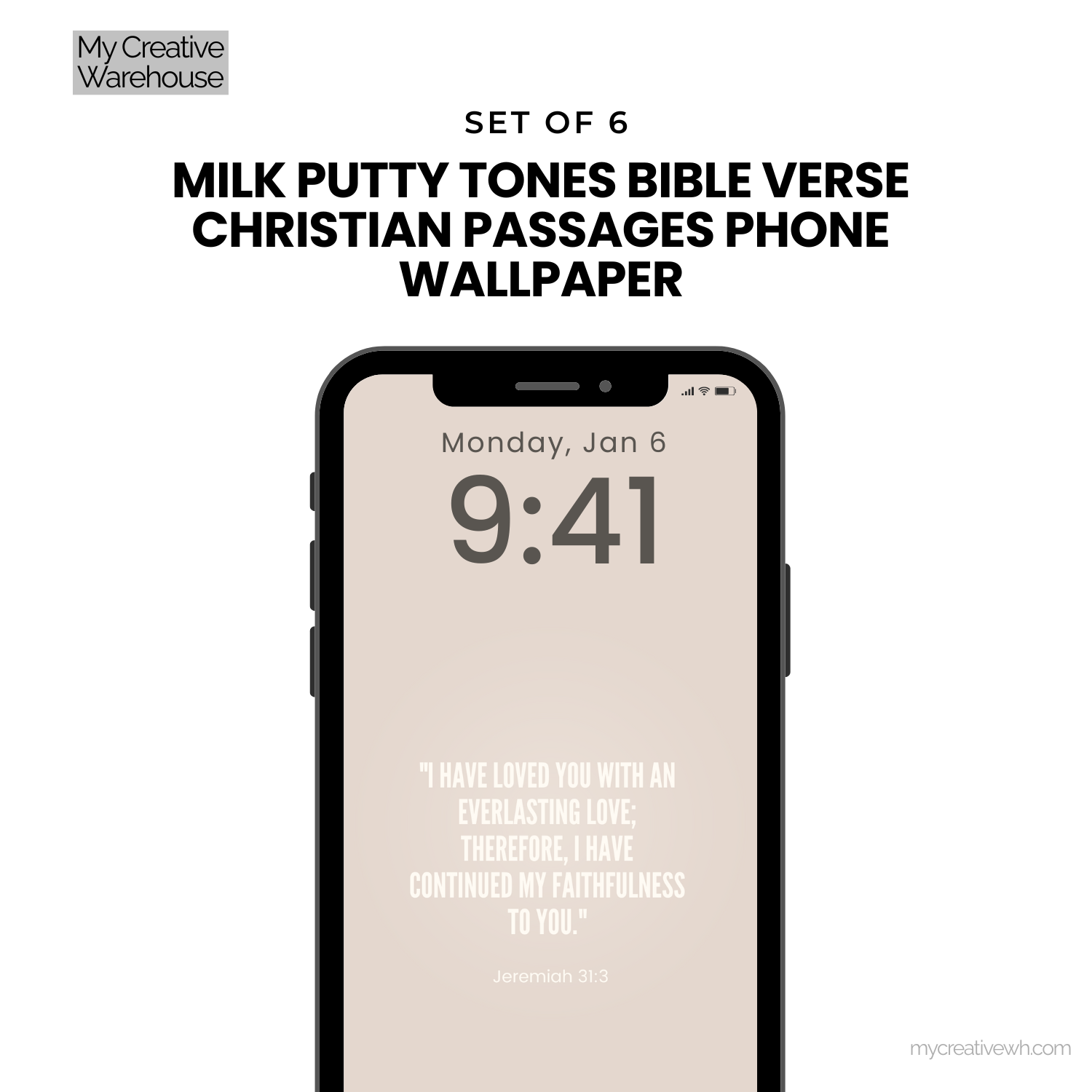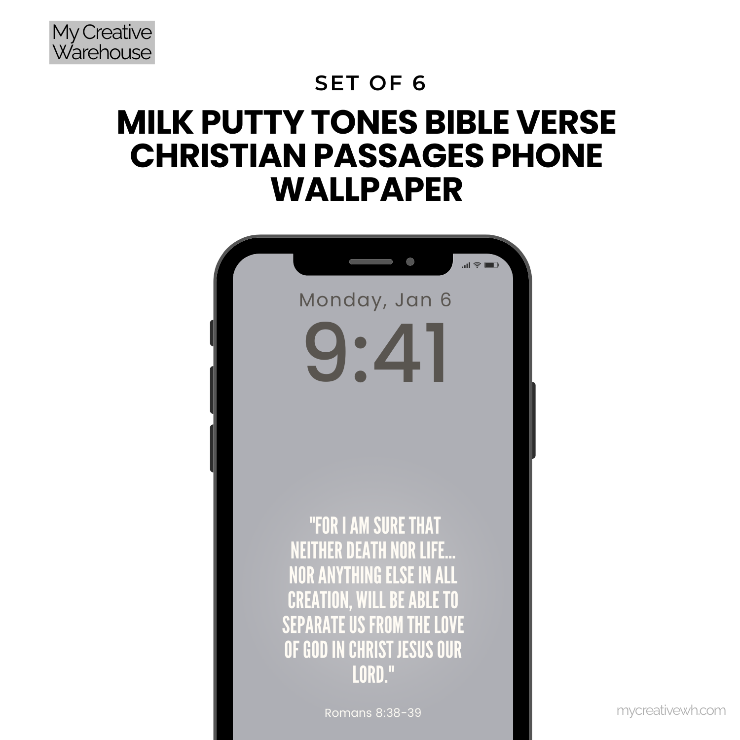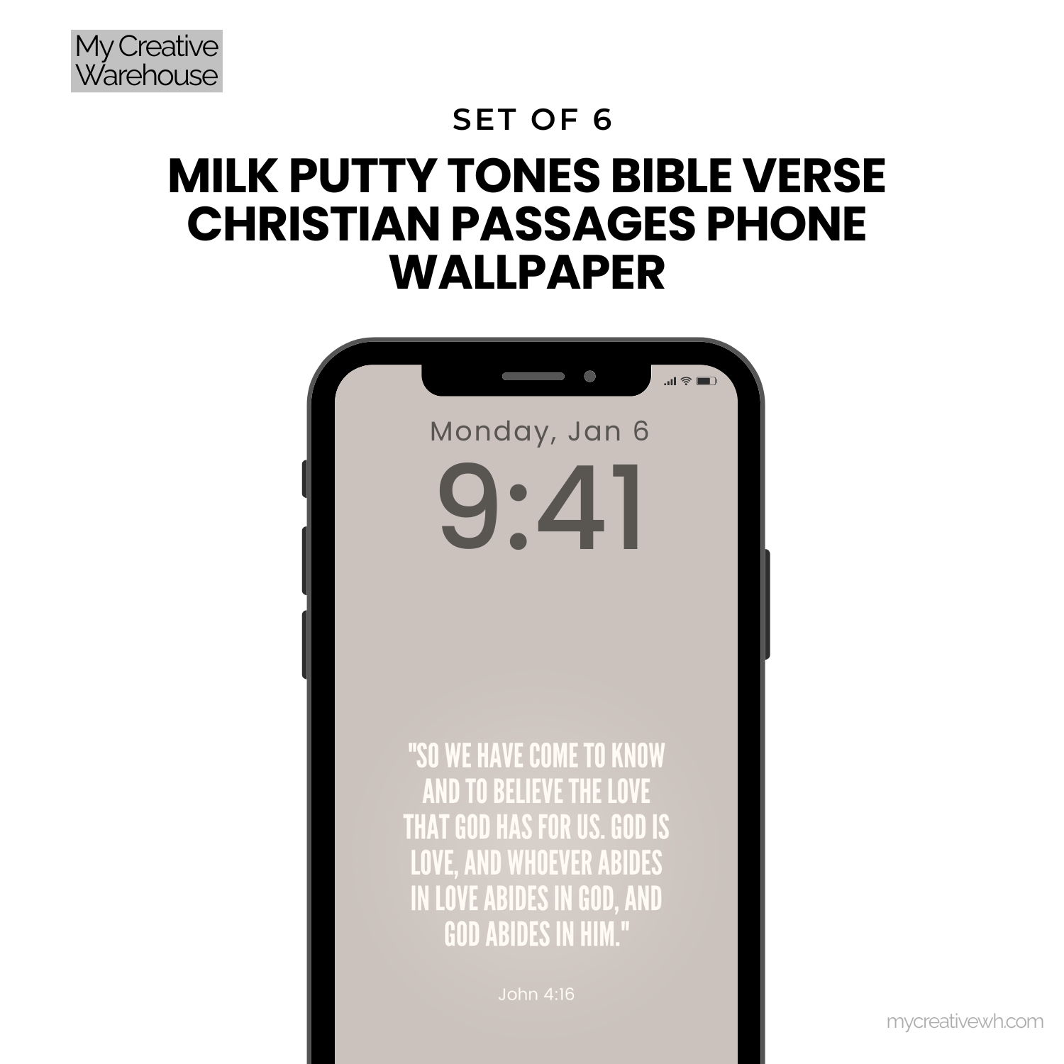 Celebrate subtlety and strength with our Milk Putty Tones Bible Verse Christian Passages Phone Wallpaper Set. This 6-design collection (plus a rosary bonus) features putty grey, taupe, and warm tan hues for a neutral, calming faith aesthetic.