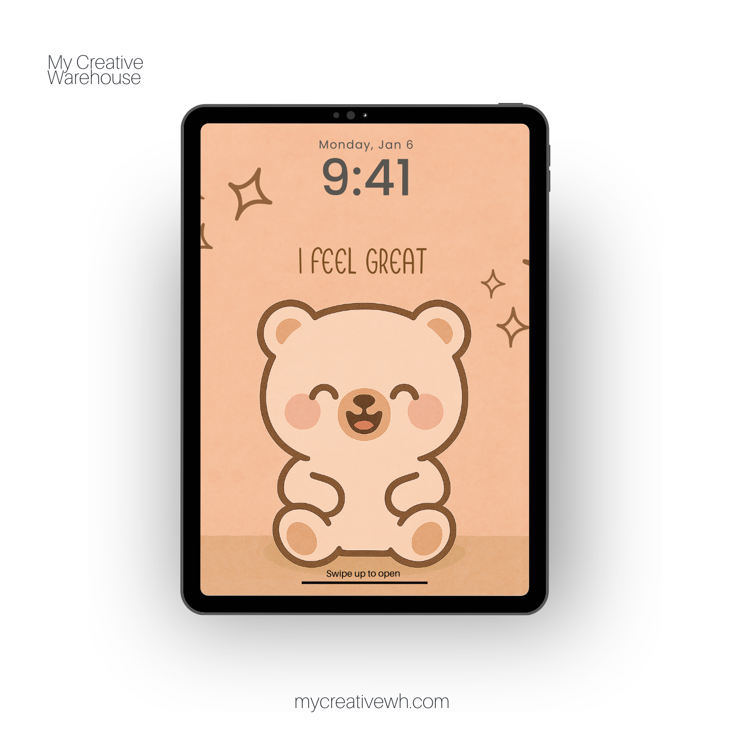 Every wallpaper brings the teddy bear’s relatable emotions to life on your tablet’s expansive screen—from the lavender-hued “Need More Sleep” (complete with floating Zzz’s) to the peachy “I Feel Great!” bursting with sunshine sparkles. Watch the teddy pout under a doodled raincloud in “Feeling a Little Gloomy” (light slate blue) or beam with excitement in “Excited to See You!” (pale yellow confetti galore). The “Hmm, That’s Interesting” bear ponders in sage green with thought bubbles, while the “I’m Having a Bad Day” bear scowls adorably against raindrops and muted red-brown tones.