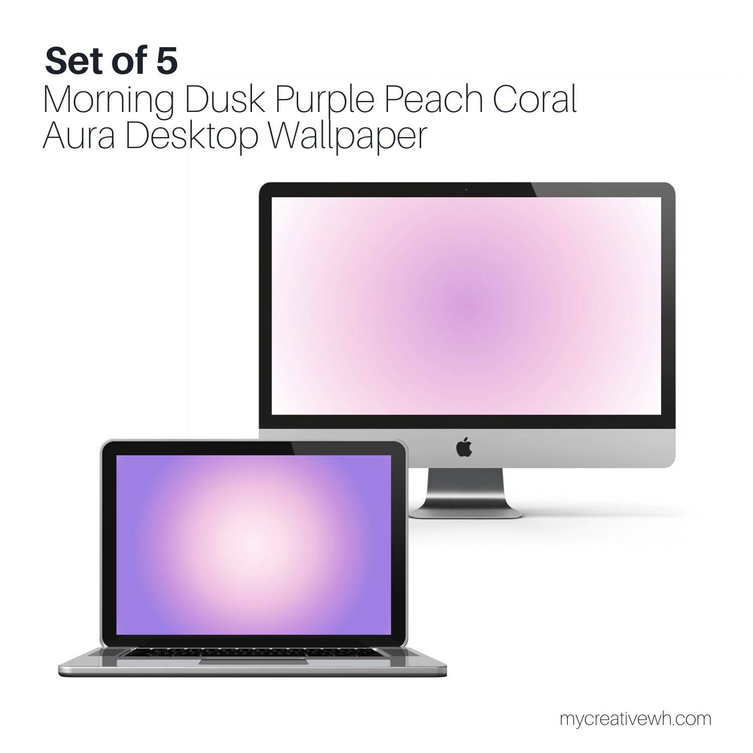 Transform your workspace into a dawn-kissed retreat with the Morning Dusk Purple Peach Coral Aura Desktop Wallpaper. This set of 5 high-resolution minimalist designs showcases a circular radial gradient ombre across your screen, merging deep purple, golden peach, and coral haze into an immersive sweet escape. The gradient’s fluid hues mirror the quiet transition from night to day, offering a captivating focal point for work, designing, or unwinding.
