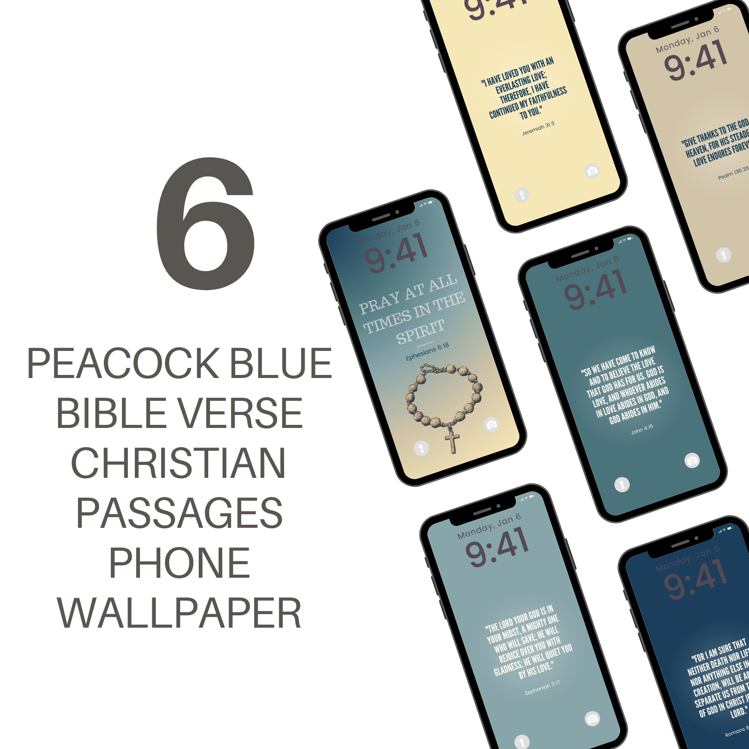 Anchor your day in divine truth with our Peacock Blue Bible Verse Christian Passages Phone Wallpaper Set. Featuring 6 high-resolution designs (plus a bonus rosary image), this collection pairs rich teal, beige, and ivory tones with powerful Scripture verses for a timeless, sophisticated faith aesthetic.