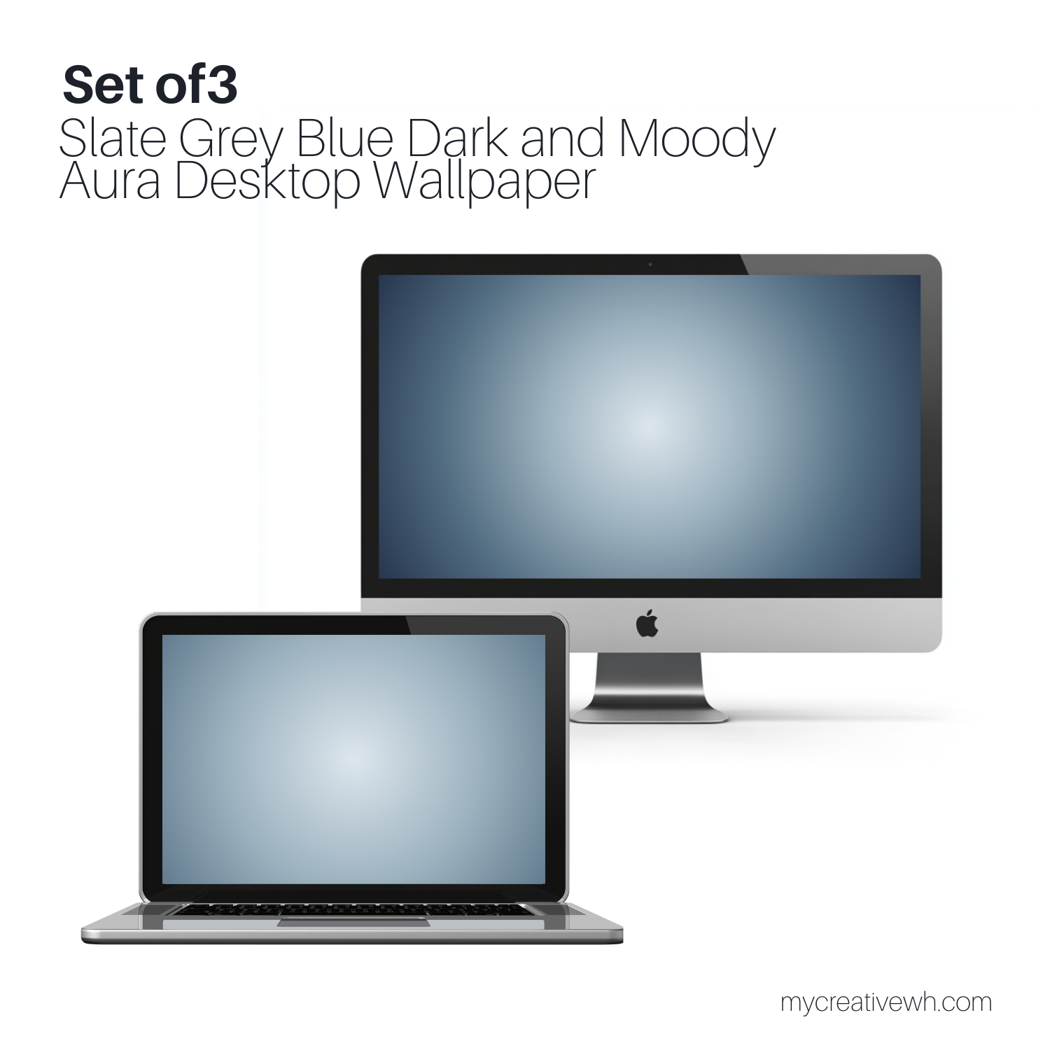 Slate Grey Blue Dark and Moody Aura Desktop Wallpaper