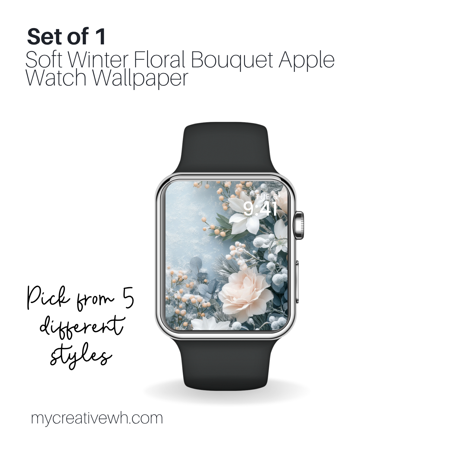 Adorn your wrist with subtle winter charm using the Soft Winter Floral Bouquet Apple Watch Wallpaper Collection. These 5 high-resolution designs miniaturize frost-kissed bouquets—amyllis, holly, and paperwhites—into delicate works of art that retain their beauty on compact screens. Soft peach, mint, and pale blue hues frame hypericum berries and brunia spheres, create a whisper of seasonal tranquility for workouts, meetings, or everyday wear.