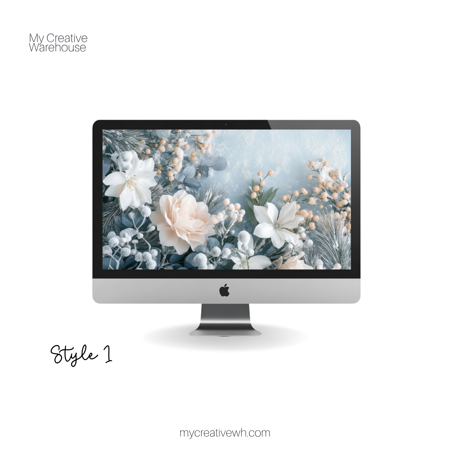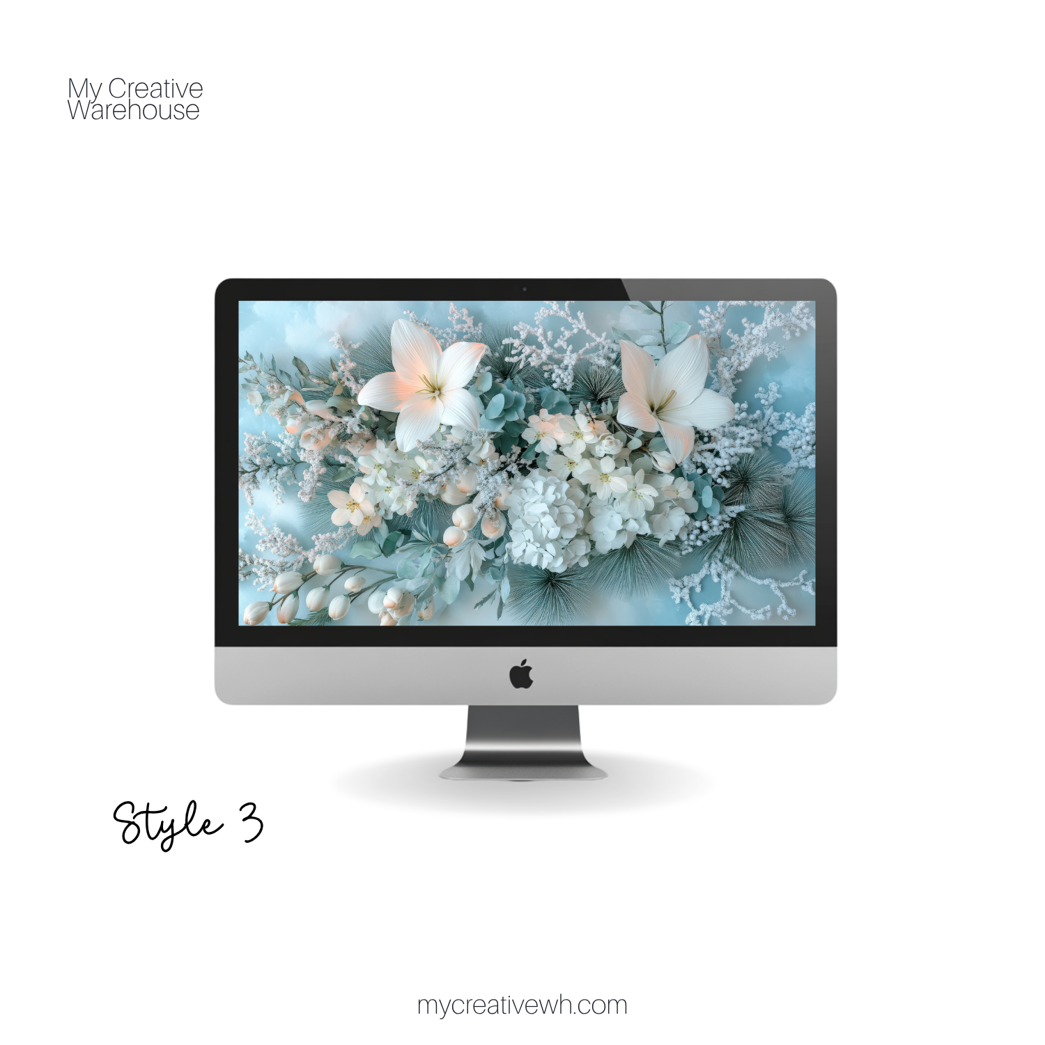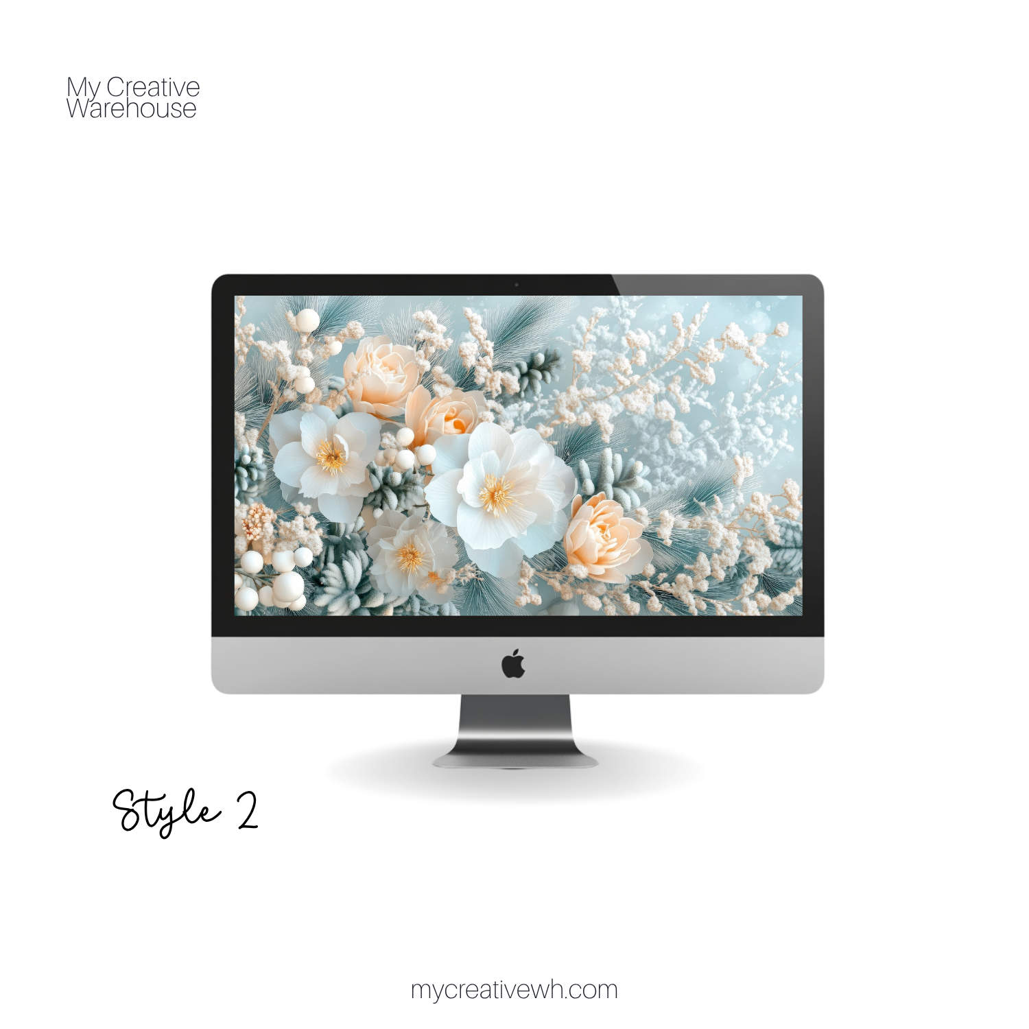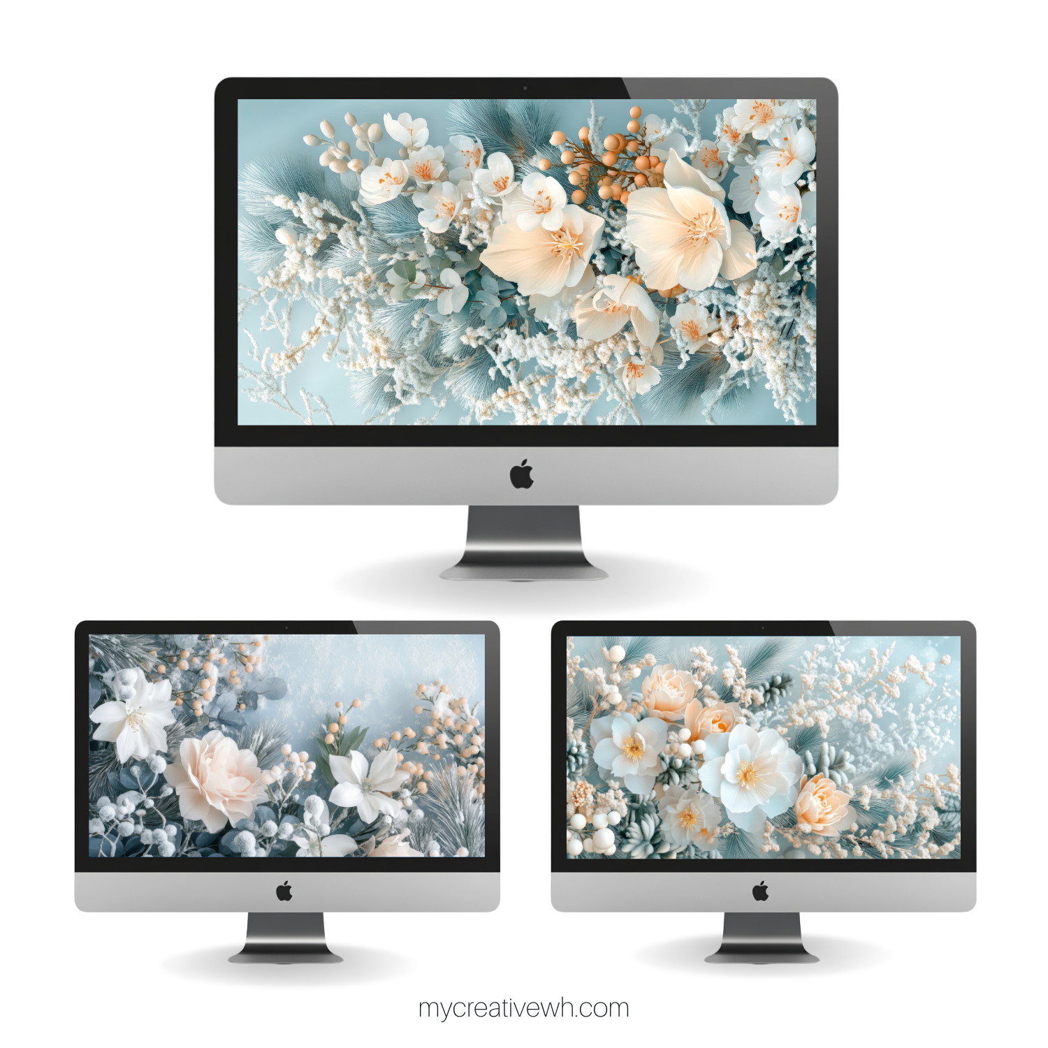 Immerse your workspace in the tranquil beauty of winter with the Soft Winter Floral Bouquet Desktop Wallpaper Collection. Each high-resolution floral design stretches across your screen with lush, frost-kissed arrangements of amaryllis, eucalyptus, and hypericum berries, in a palette of pale blue, peach, and ivory. The widescreen canvas highlights every pine sprig and Dusty Miller frond, turning monitors into windows of a serene, snow-globe garden.