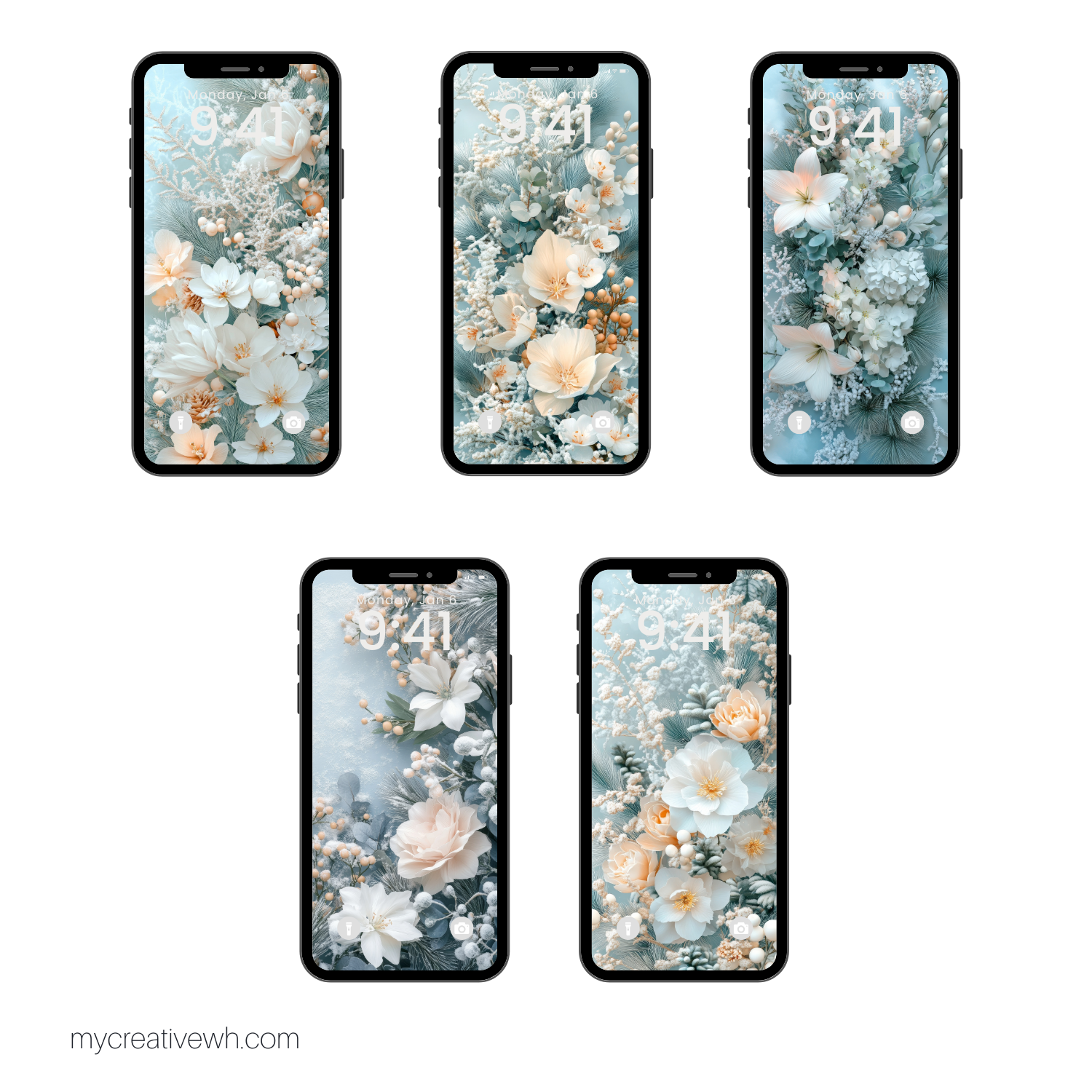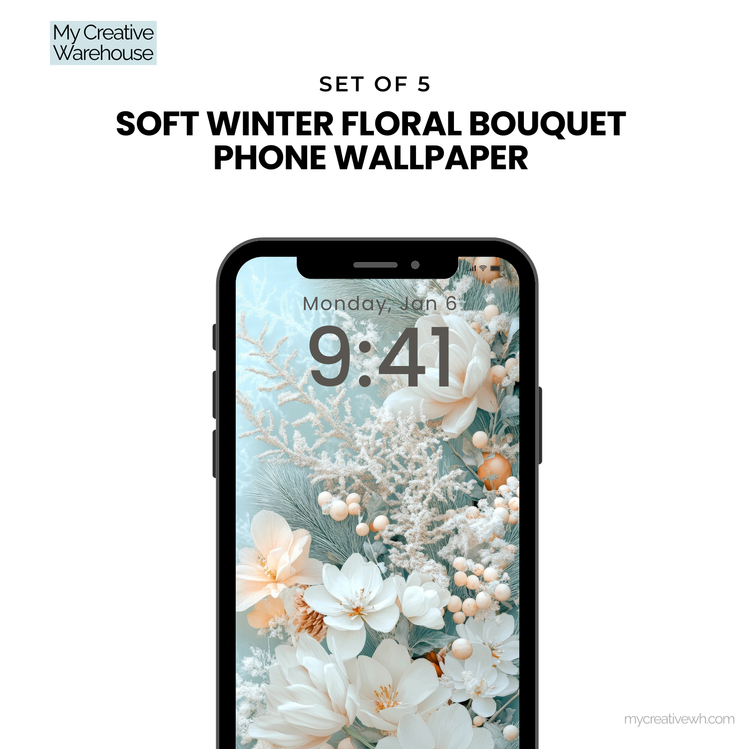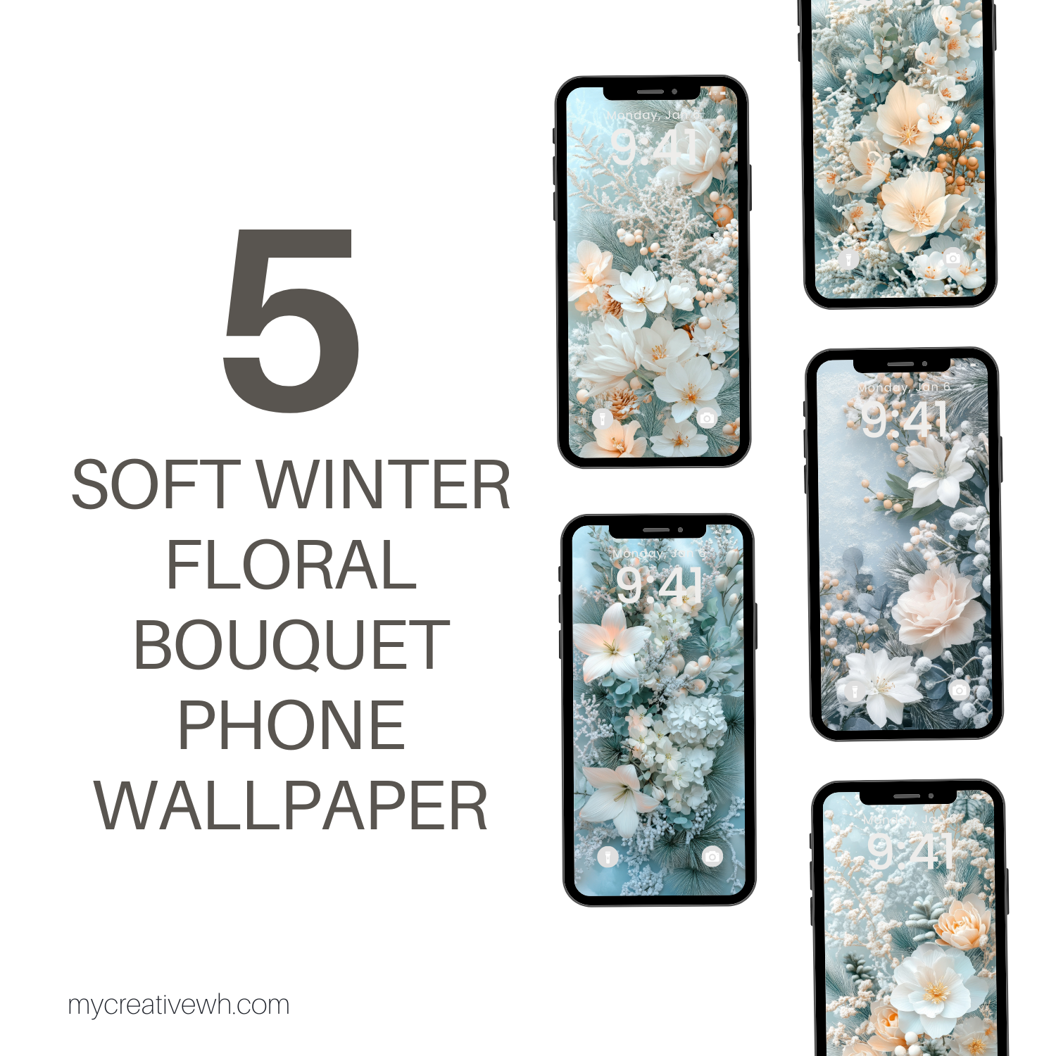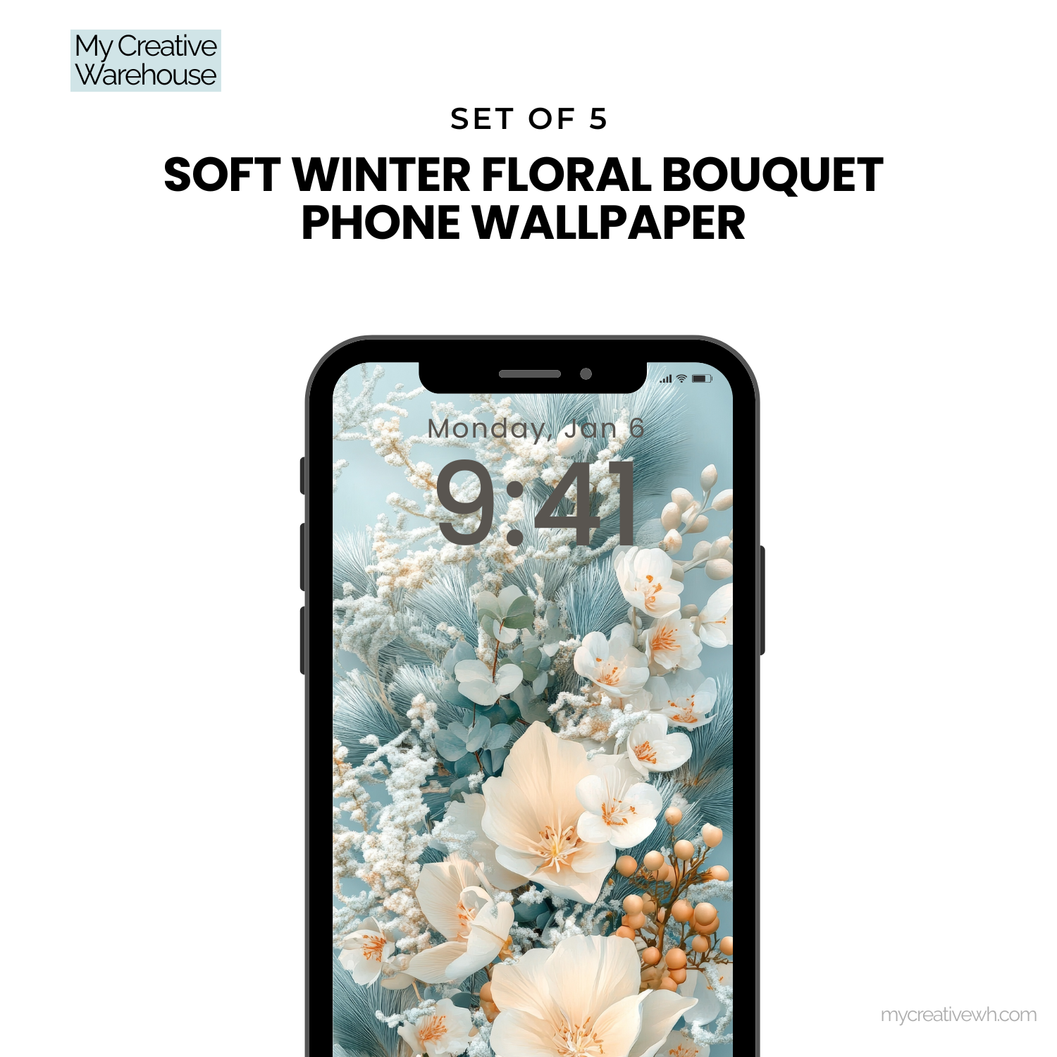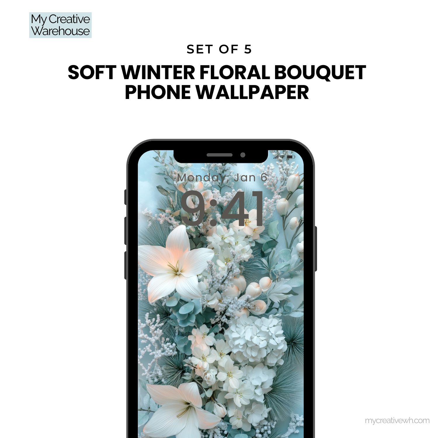 Transform your phone into a serene winter garden with our Soft Winter Floral Bouquet Phone Wallpaper Set—a collection of 5 high-resolution digital designs that capture the delicate beauty of the season. Each wallpaper immerses your screen in lush, frost-kissed bouquets of amaryllis, holly, paperwhites, hypericum berries, and trailing eucalyptus, artfully intertwined with pine sprigs, brunia’s silver-tinged spheres, and the feathery texture of Dusty Miller.