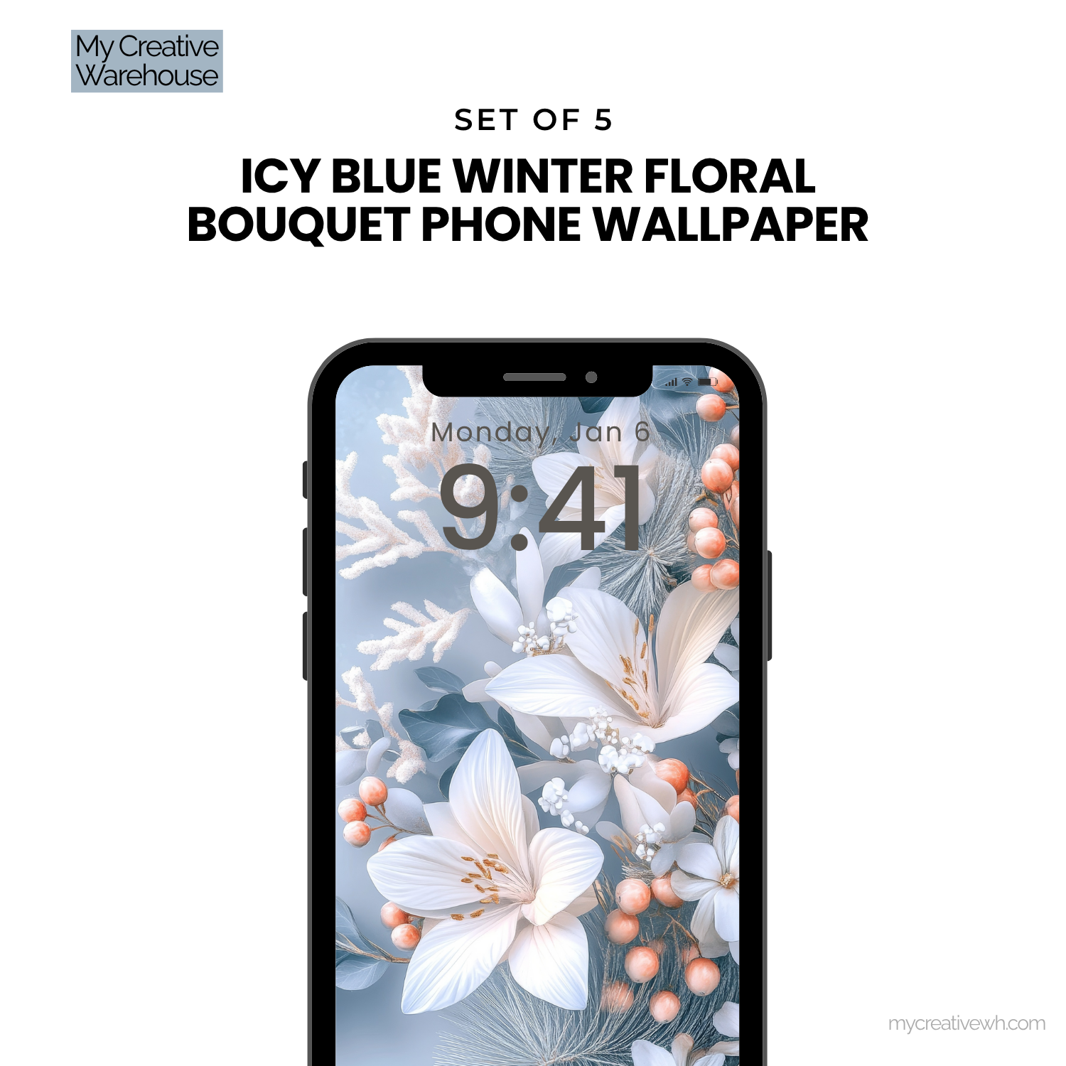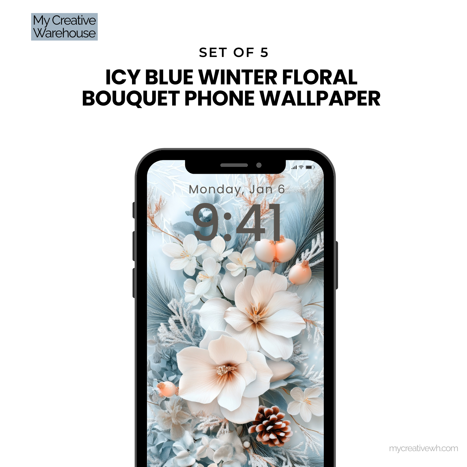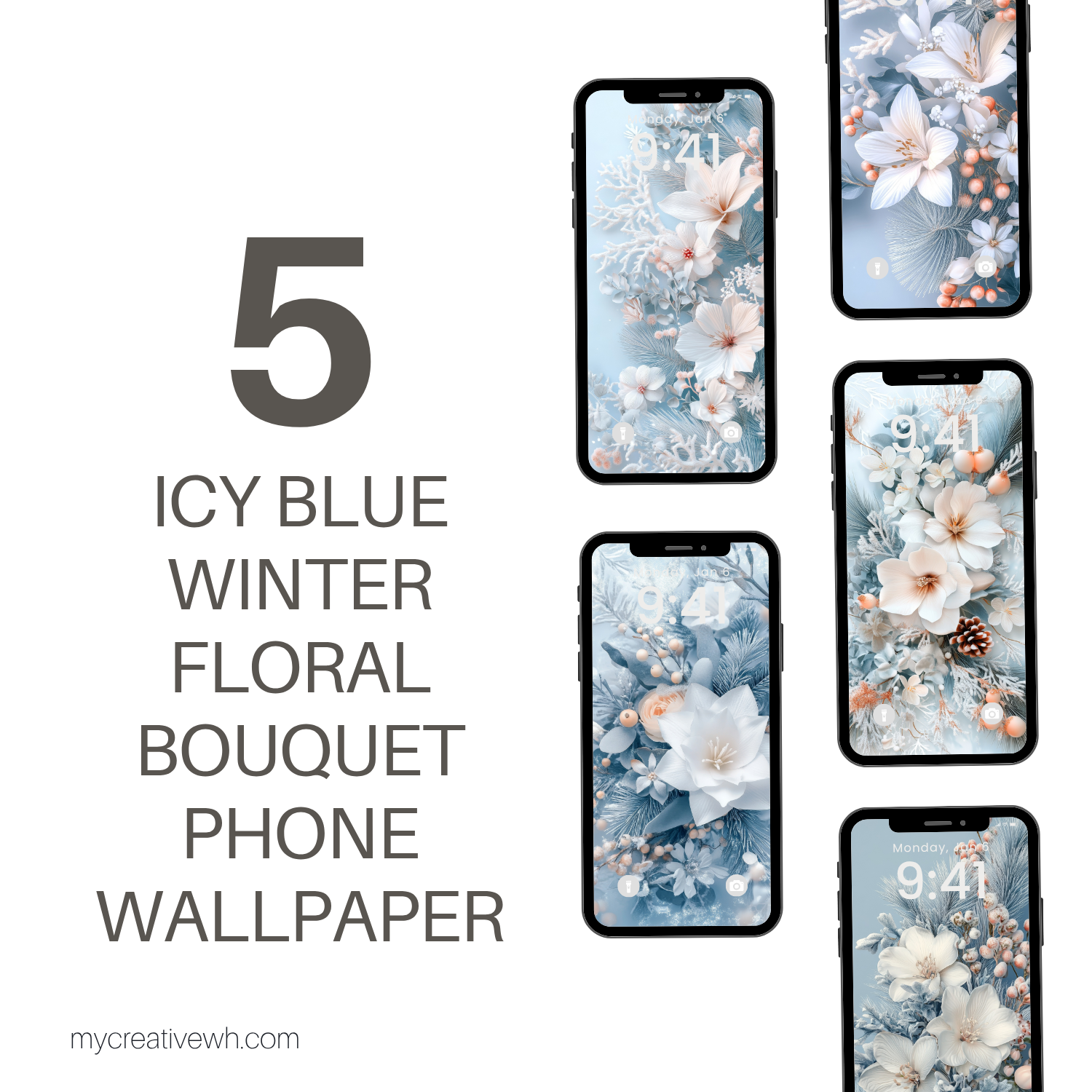 Icy Blue Winter Floral Bouquet Phone Wallpaper