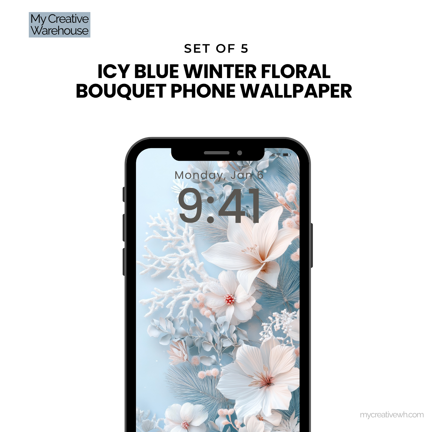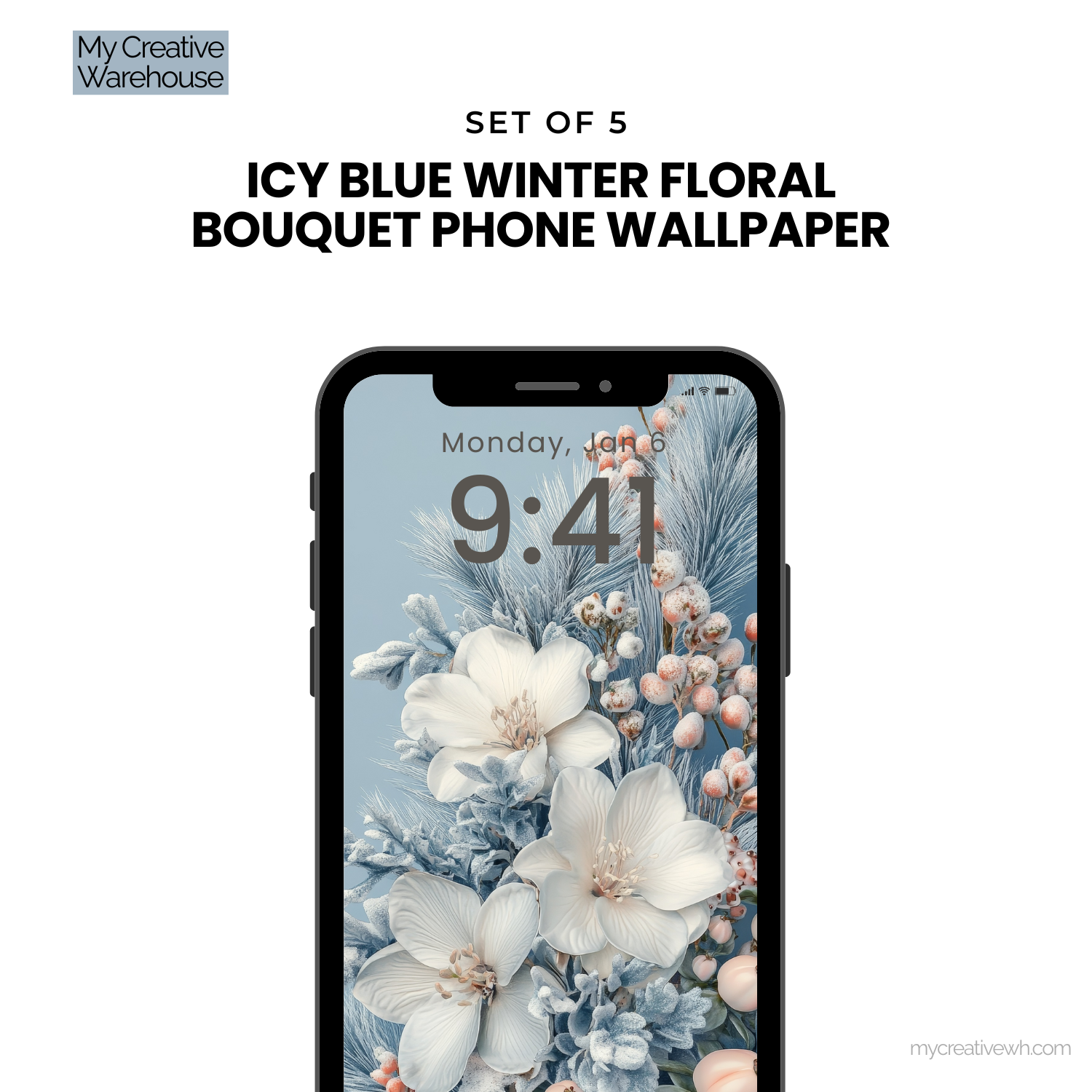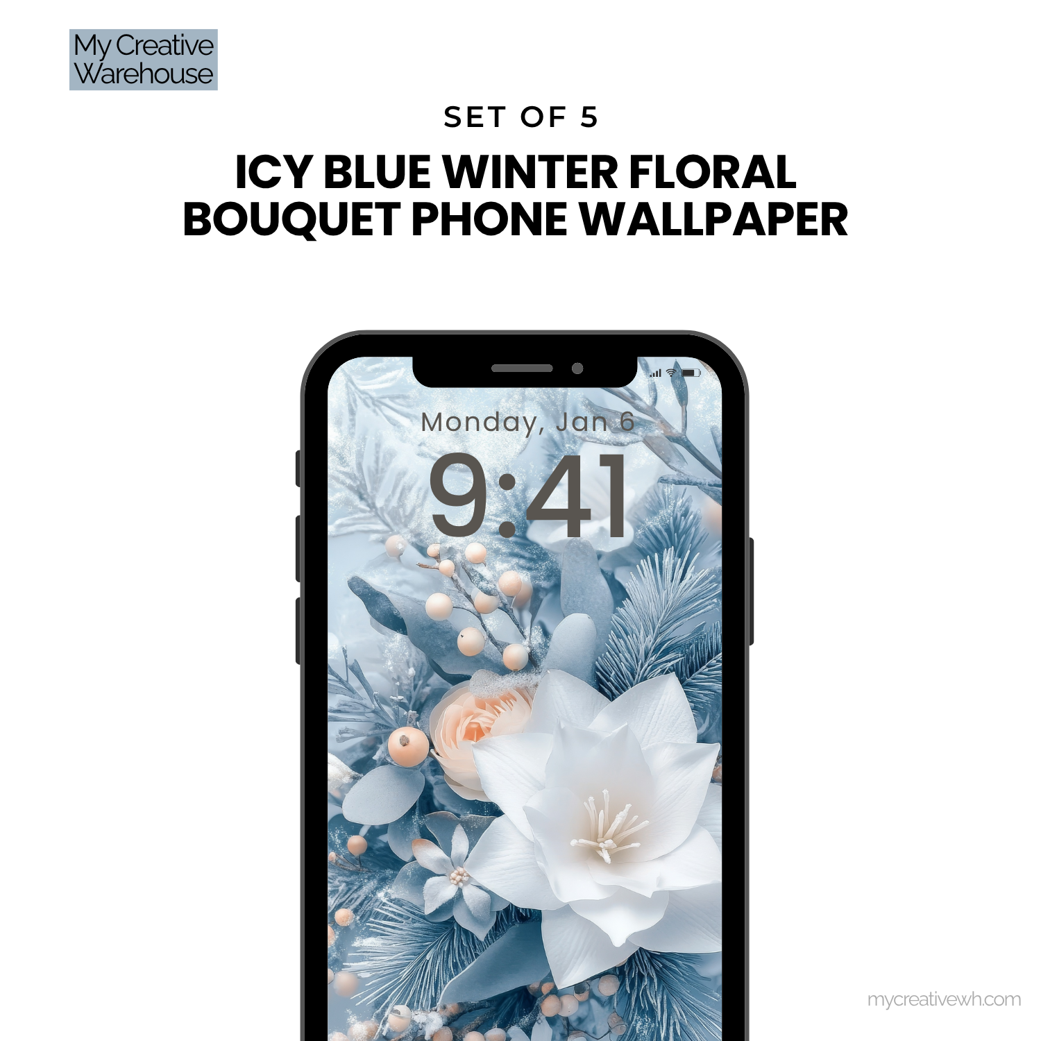 Icy Blue Winter Floral Bouquet Phone Wallpaper