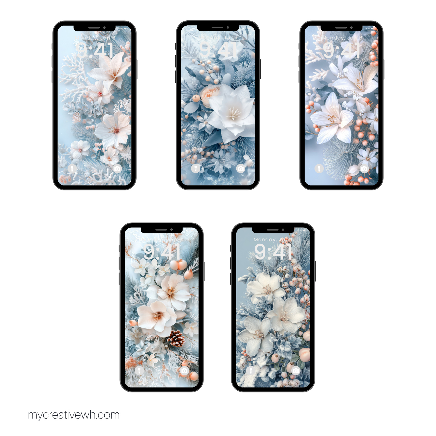 Perfect for minimalists and nature lovers alike, these designs balance frosty coolness with warm, inviting accents. Whether you’re craving a touch of winter holiday magic or year-round calm, this set merges delicate florals with icy elegance.