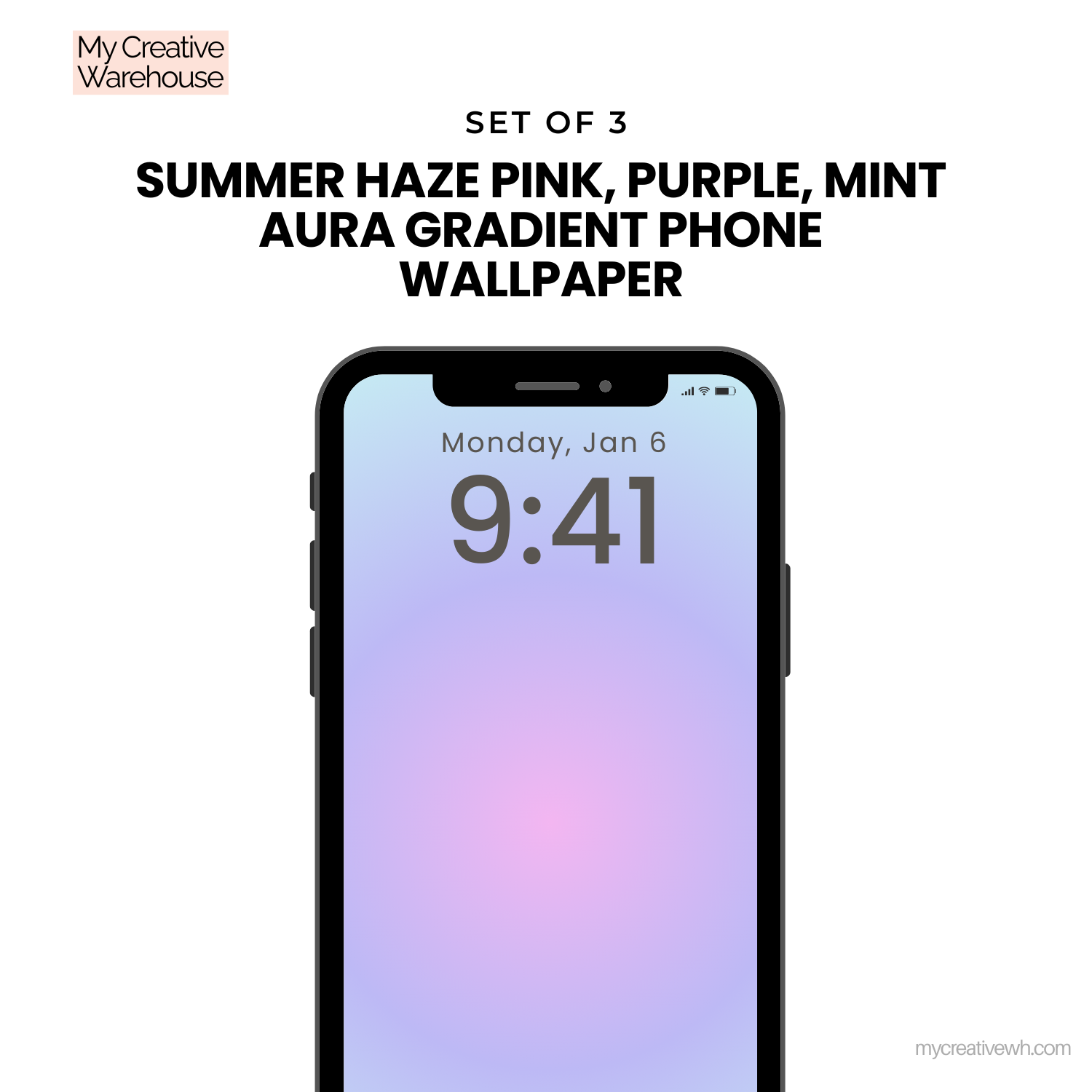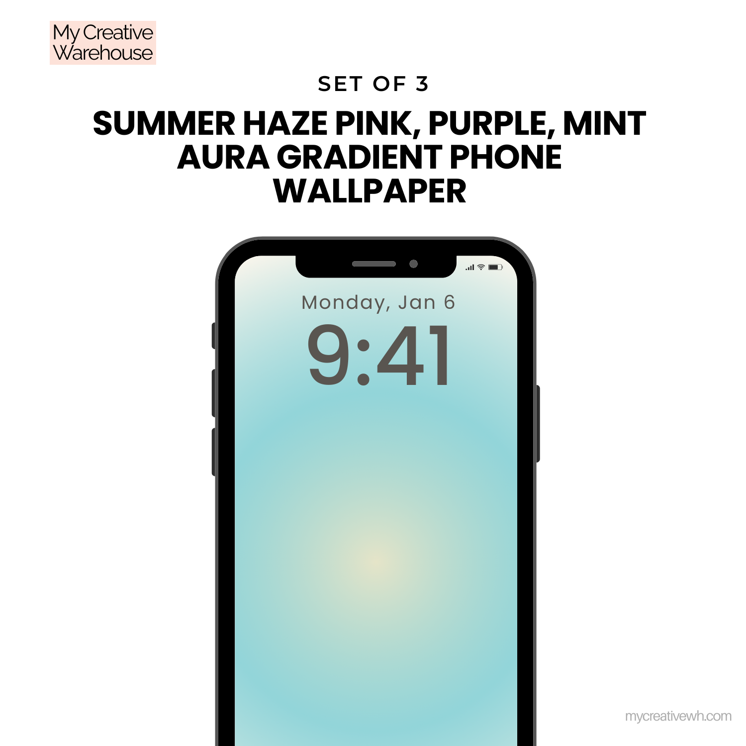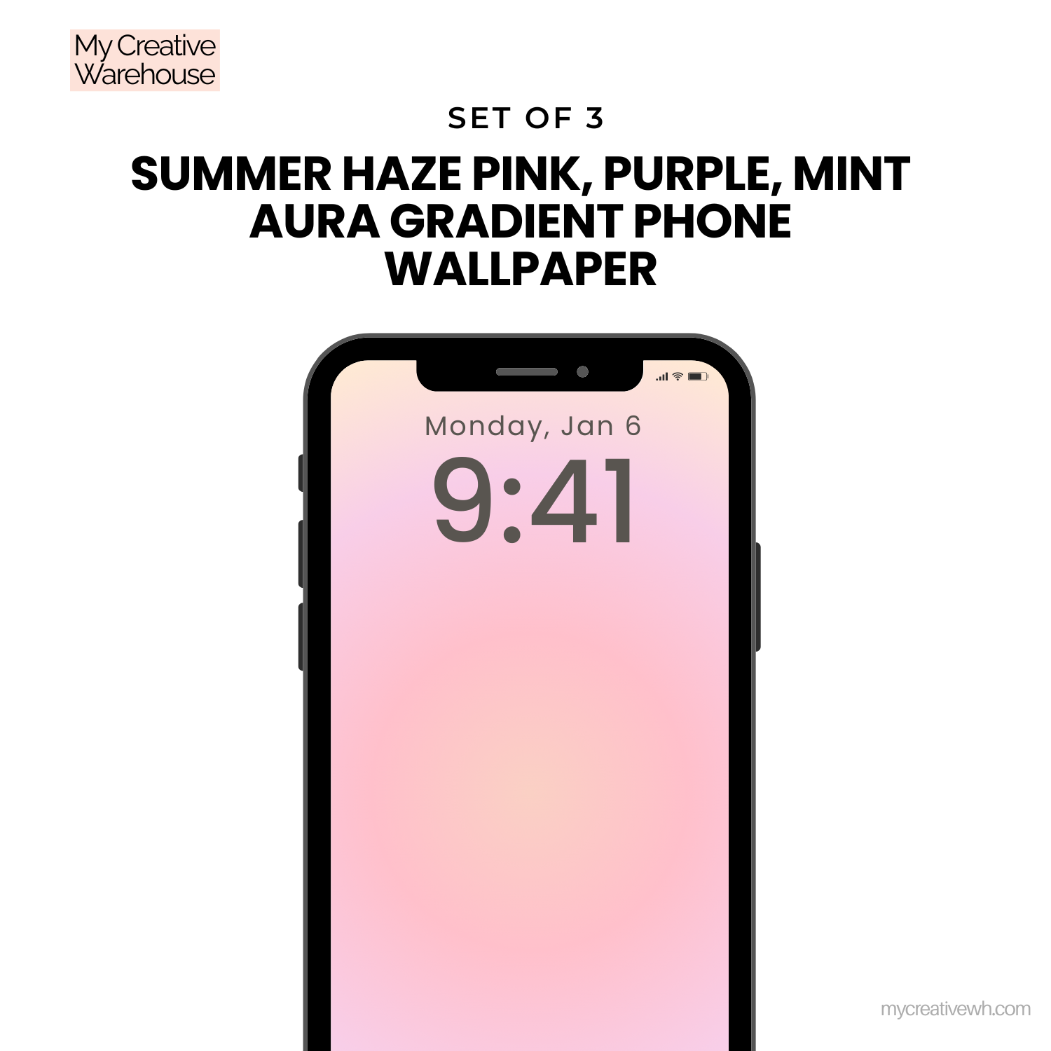 Summer Haze Pink, Purple, Mint Aura Gradient Phone Wallpaper