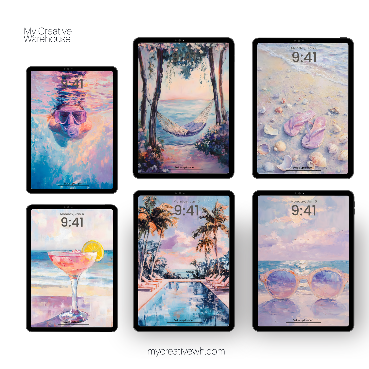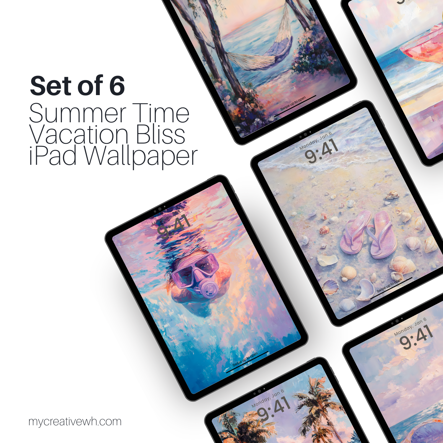 Elevate your tablet into a portal of serene summer escapes with the Summer Time Vacation Bliss iPad Wallpaper Set. This collection of 6 high-resolution Monet-inspired designs transforms your iPad screen into an art display of vacation scenes, rendered in soft, impressionist brushstrokes that evoke the tranquility of a sunlit paradise.