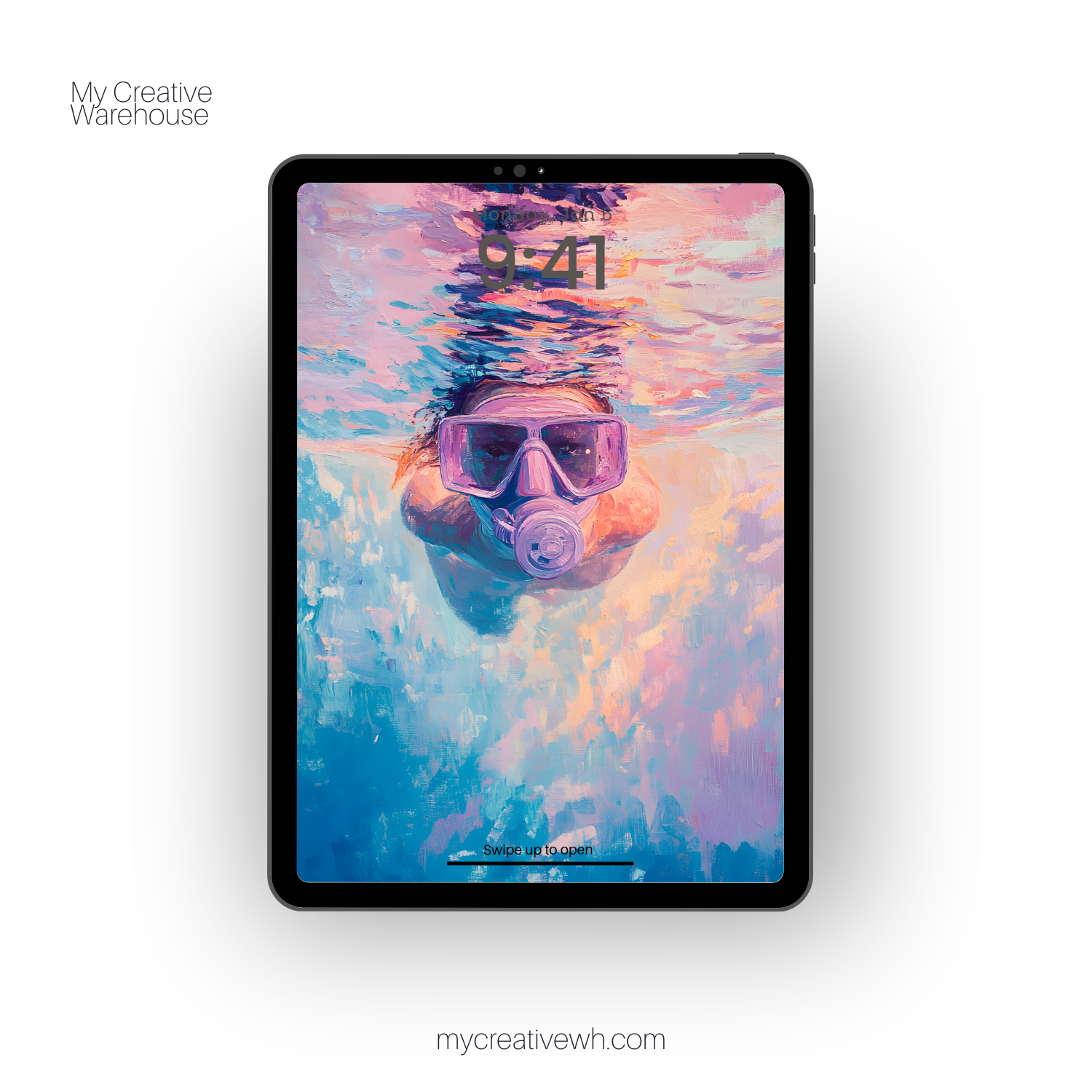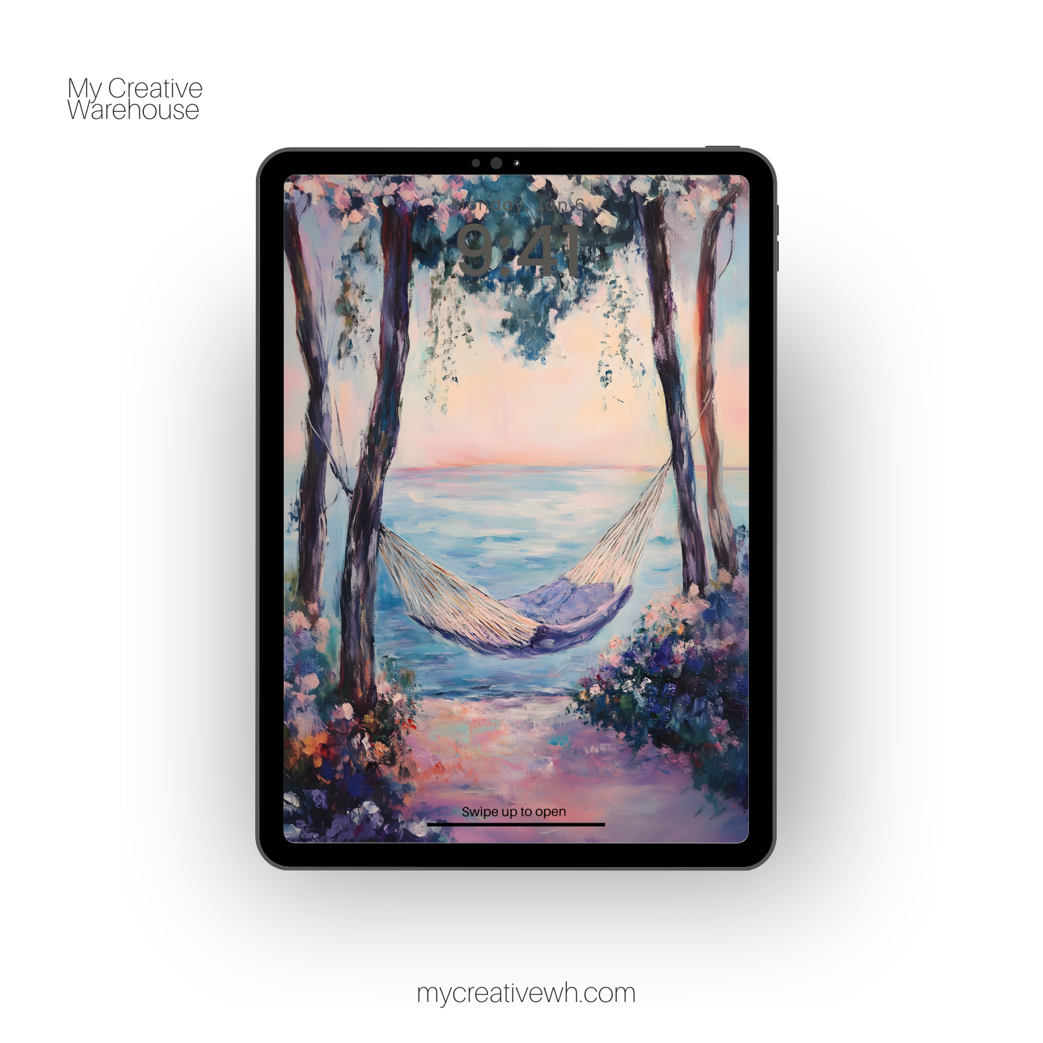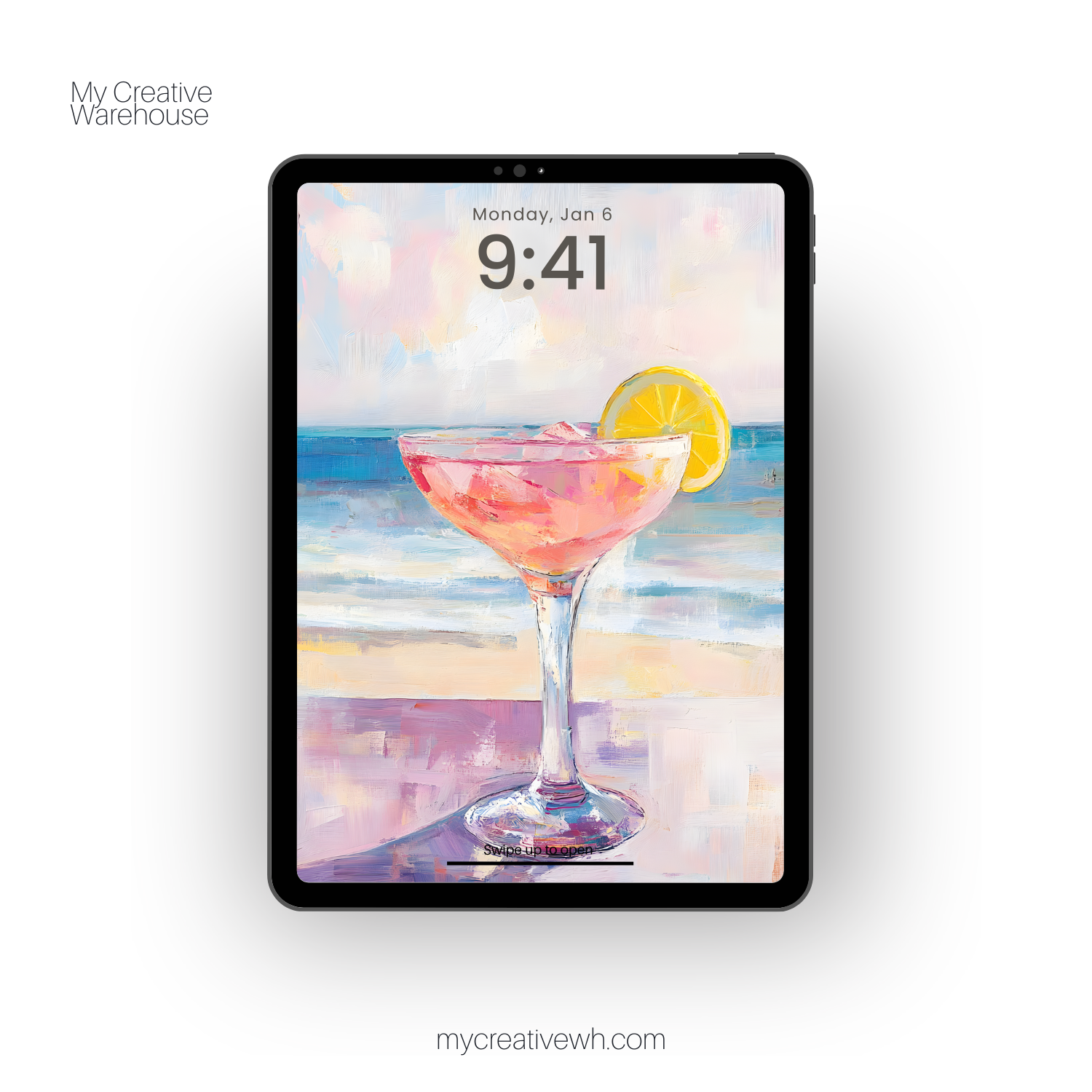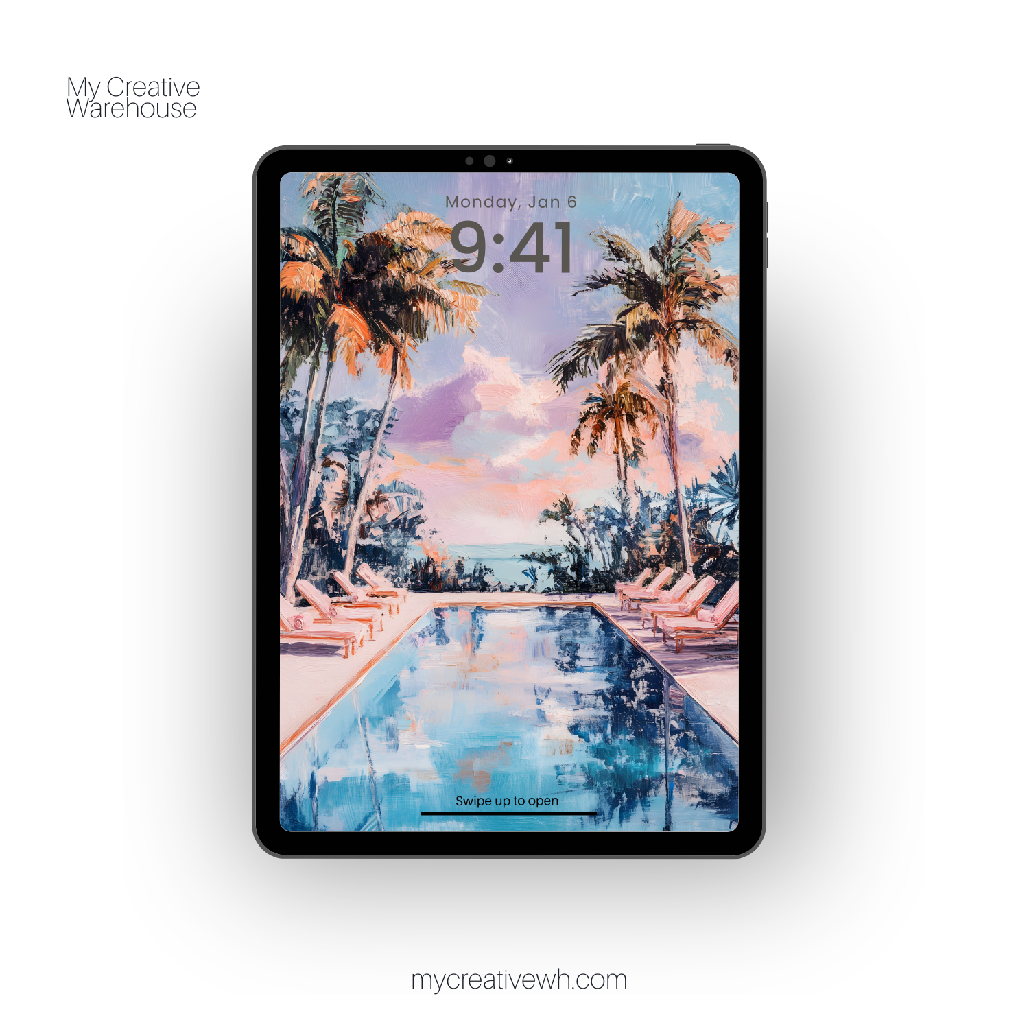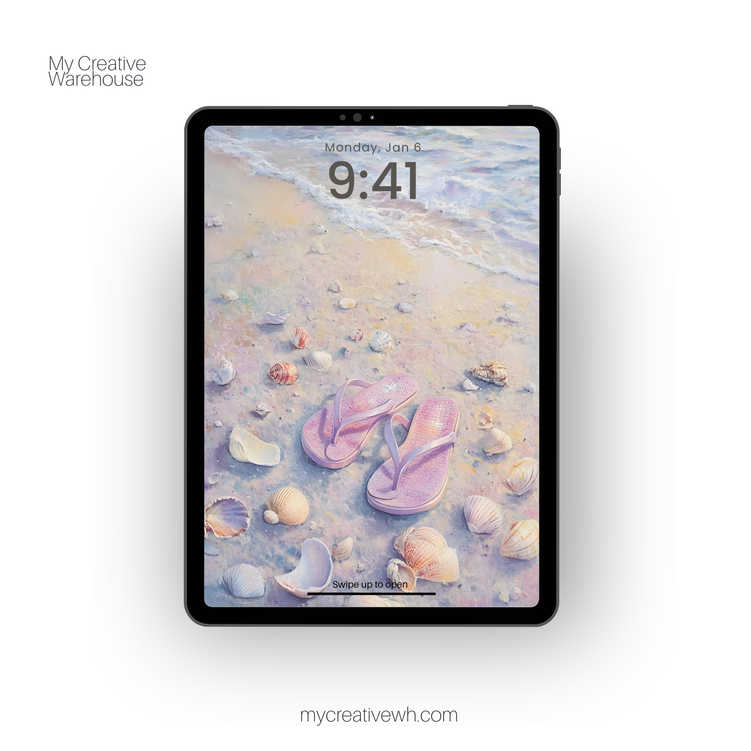 From a snorkeling girl gliding through turquoise waters, a hammock swaying under floral blooms, a poolside oasis framed by palms, a cocktail overlooking the water, or seashells scattered near pink flip-flops on golden sand, each image allows you to fantasize about the perfect getaway. Made for wanderlust-driven creatives, these wallpapers turn note-taking, sketching, or streaming into a moment of calm artistry.