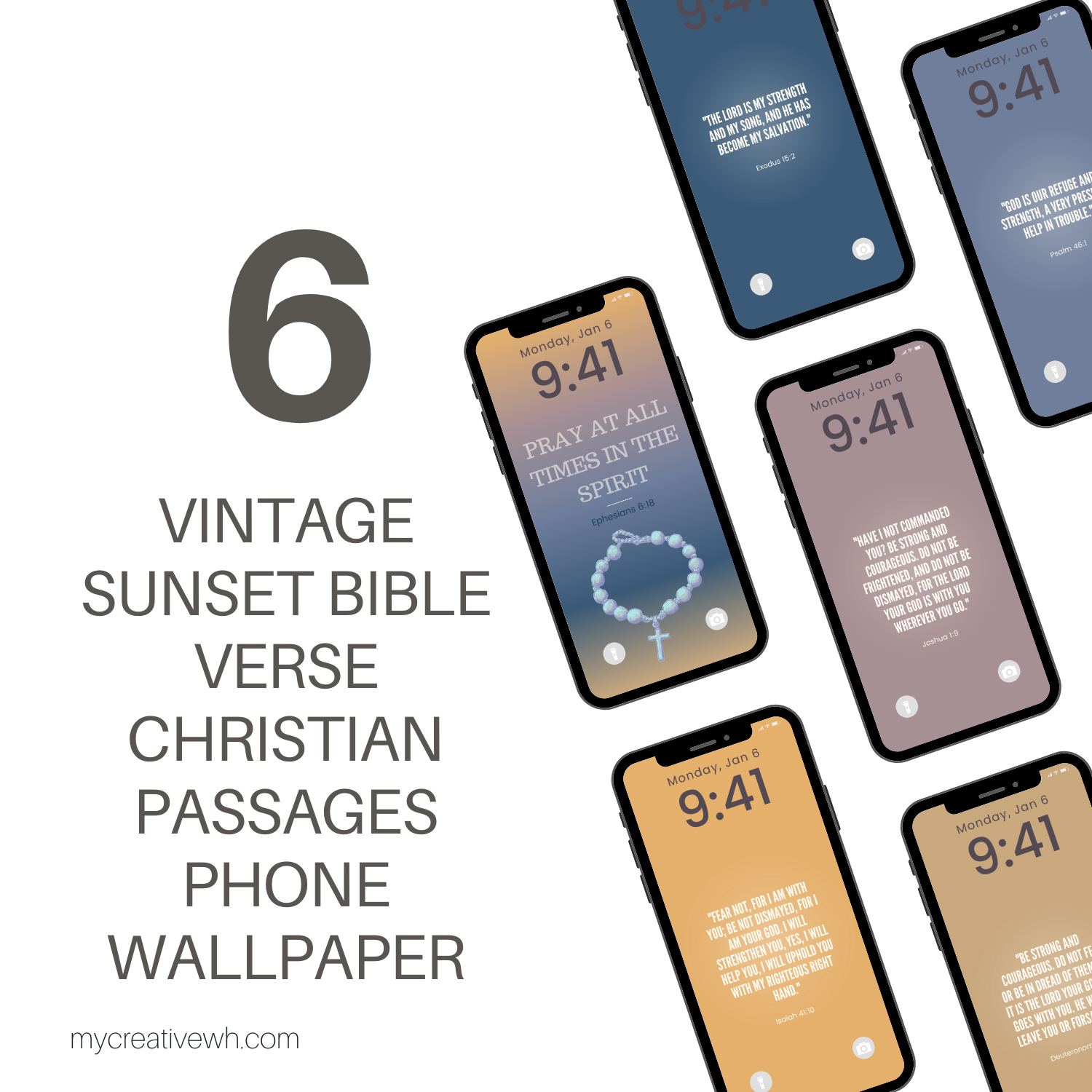 Wrap your screen in the warmth of God’s promises with our Vintage Sunset Bible Verse Christian Passages Phone Wallpaper Set. This collection of 6 high-resolution designs (plus a rosary bonus) features muted orange, golden yellow, periwinkle, and midnight blue tones, evoking the soulful glow of a dusk sky.